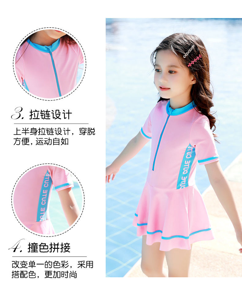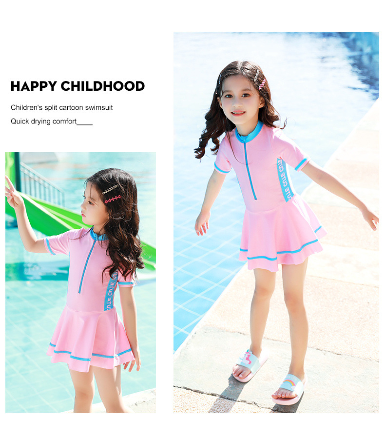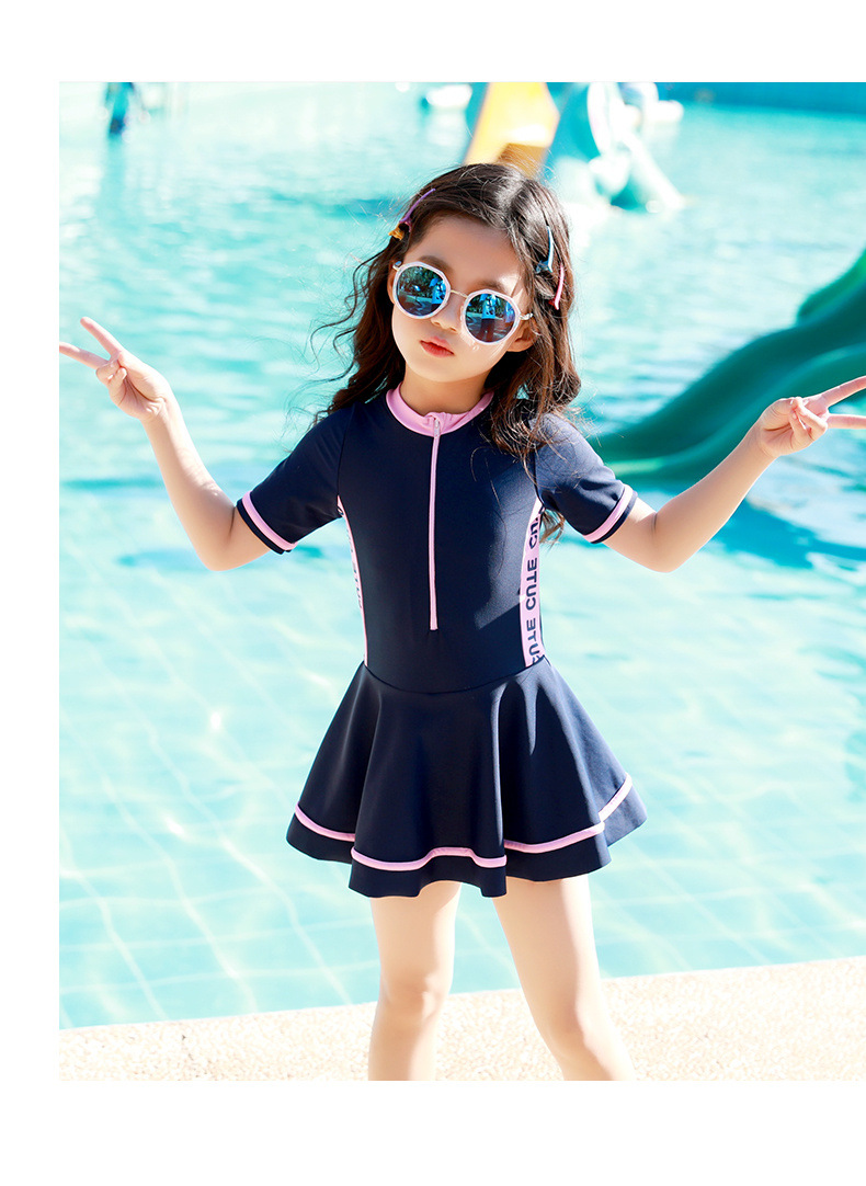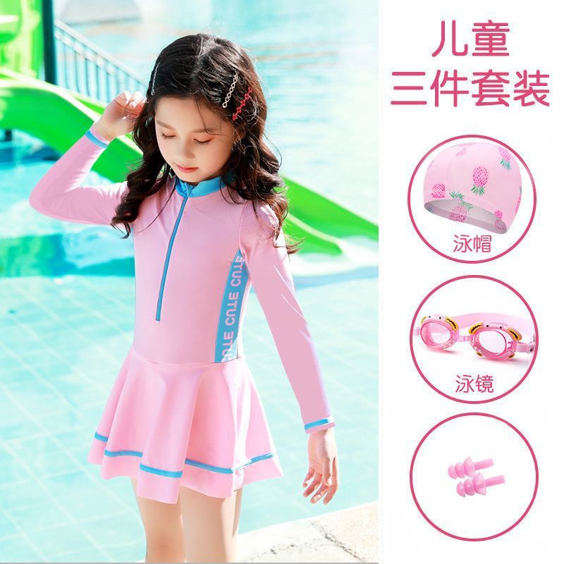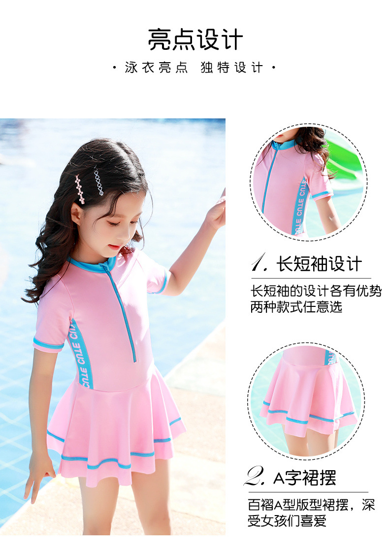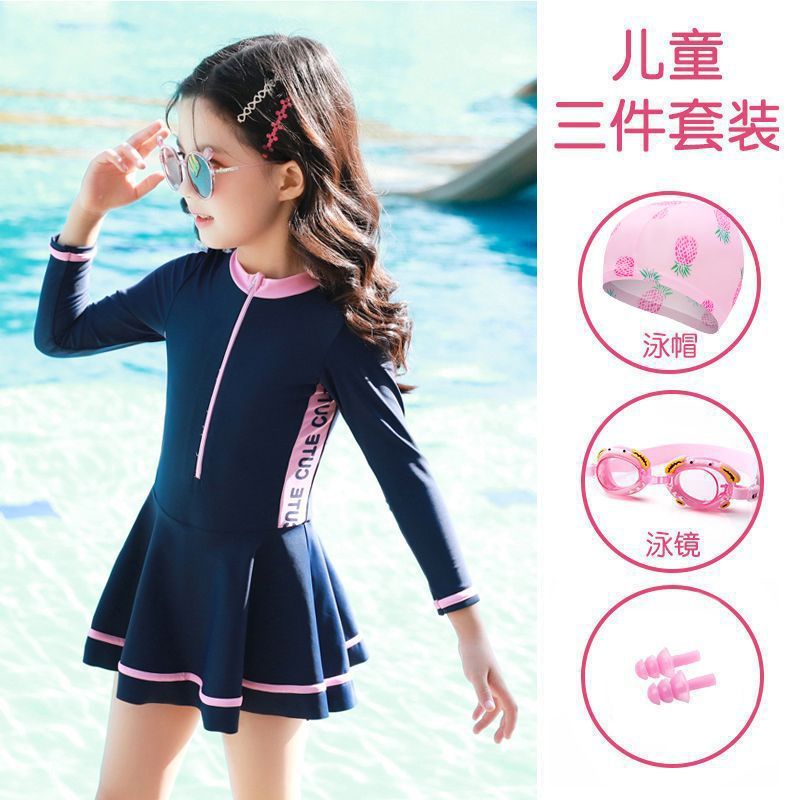 어린이 수영복 소녀 귀여운 원피스 소녀 큰 어린이 새로운 원피스 귀여운 보수적 수영 세트 대외 무역 도매스토어 가기
