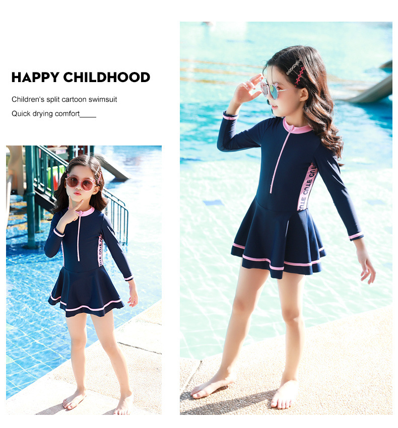 어린이 수영복 소녀 귀여운 원피스 소녀 큰 어린이 새로운 원피스 귀여운 보수적 수영 세트 대외 무역 도매