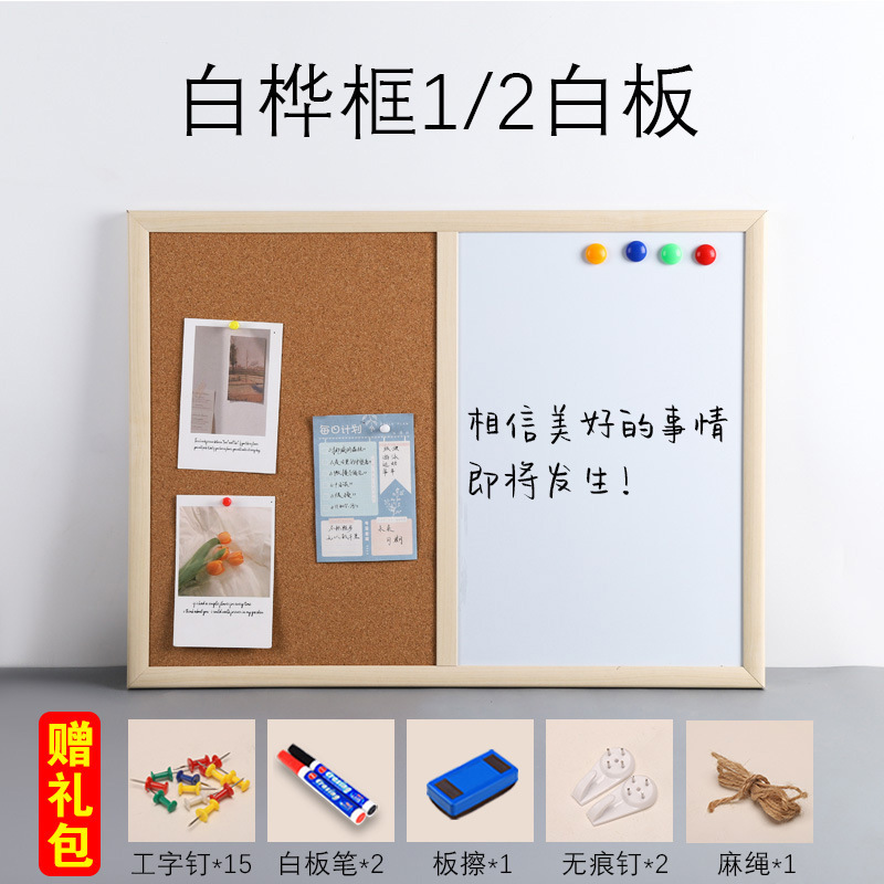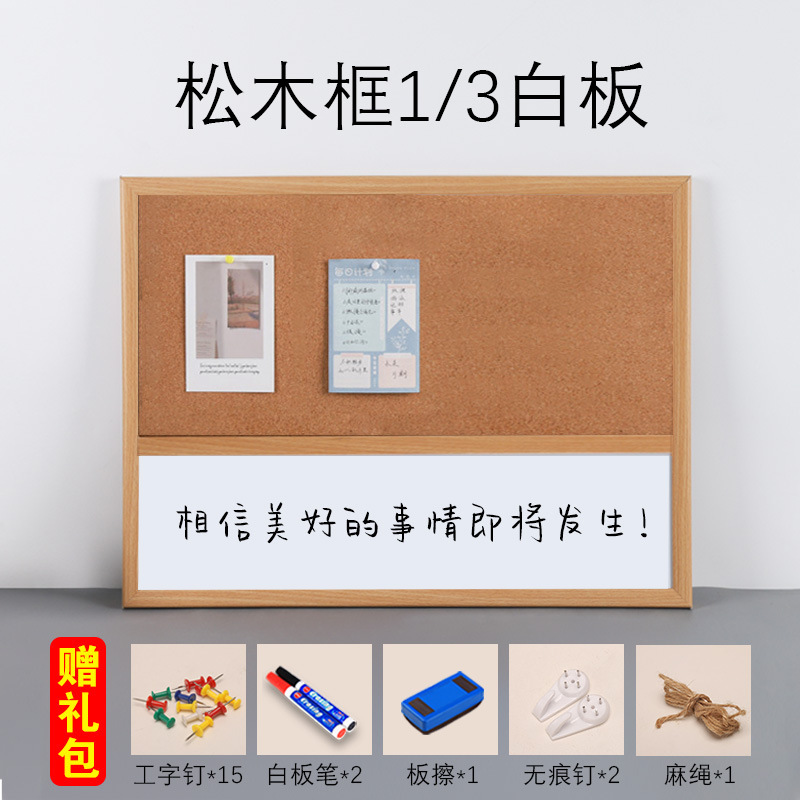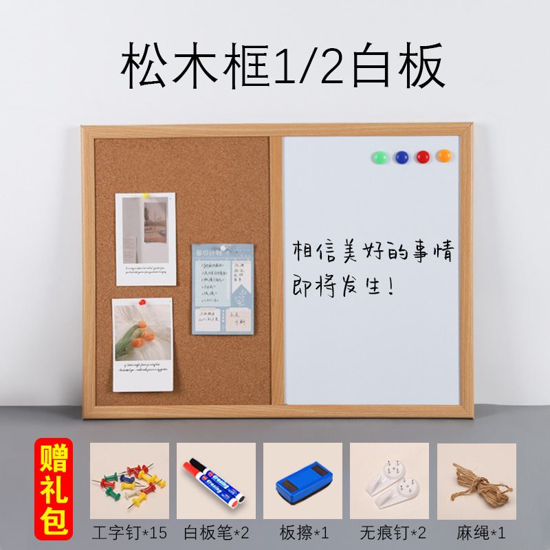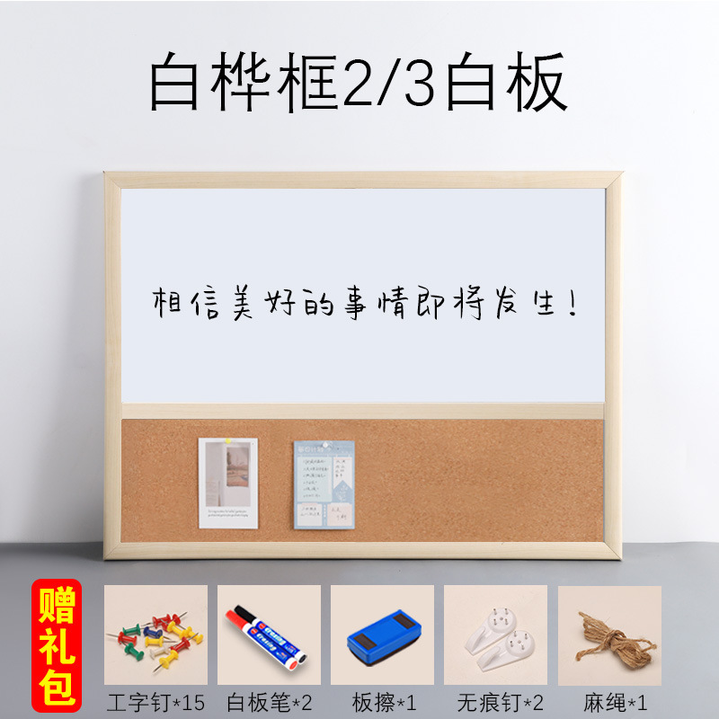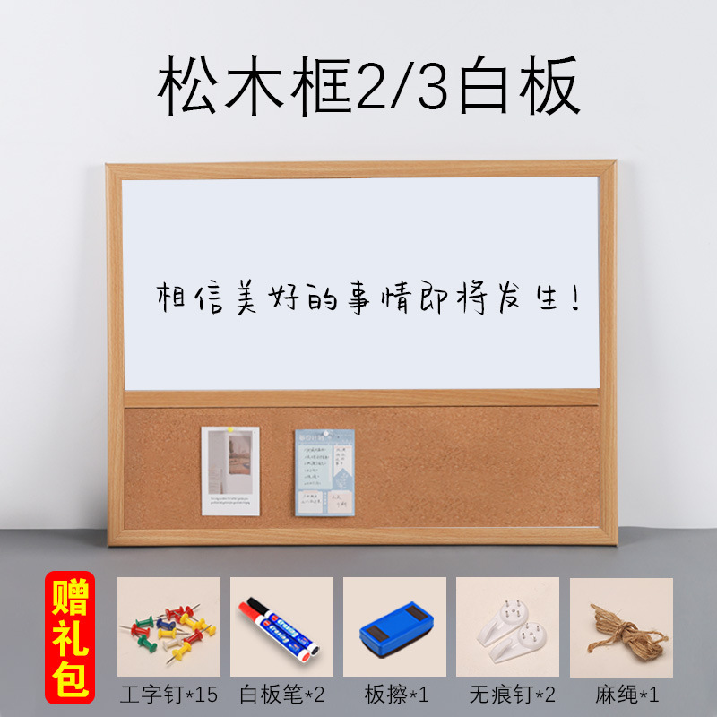 • [소나무 나뭇결 프레임] 화이트보드 1/3 + 선물가방-60x90cm