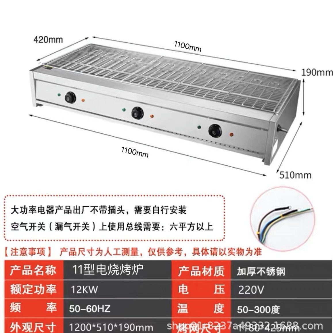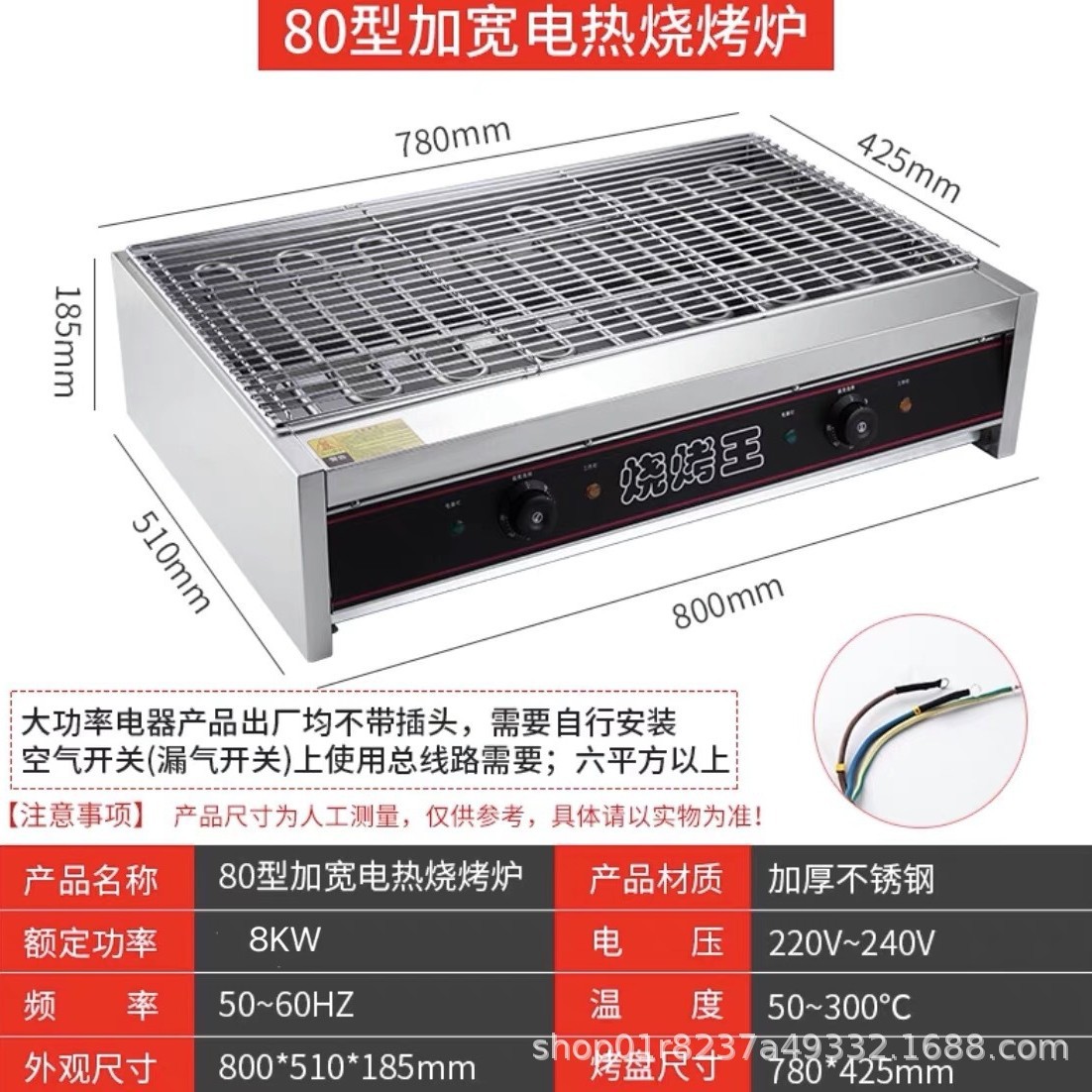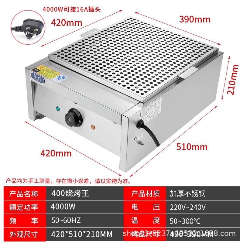 • 400 넓어진 BBQ King은 16A 플러그에 연결할 수 있습니다.