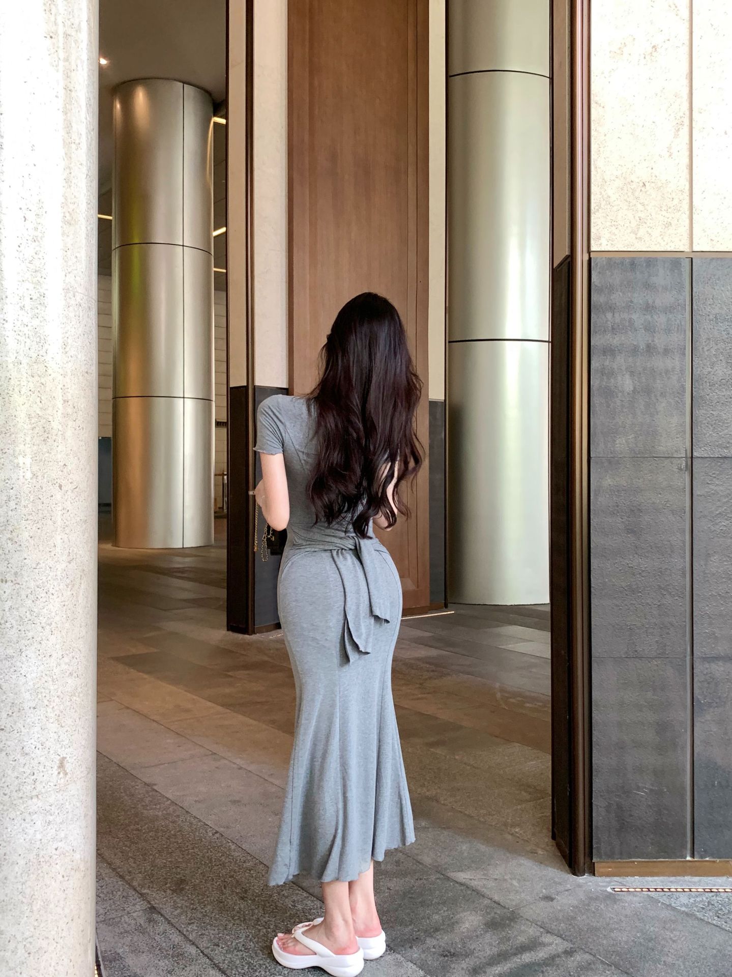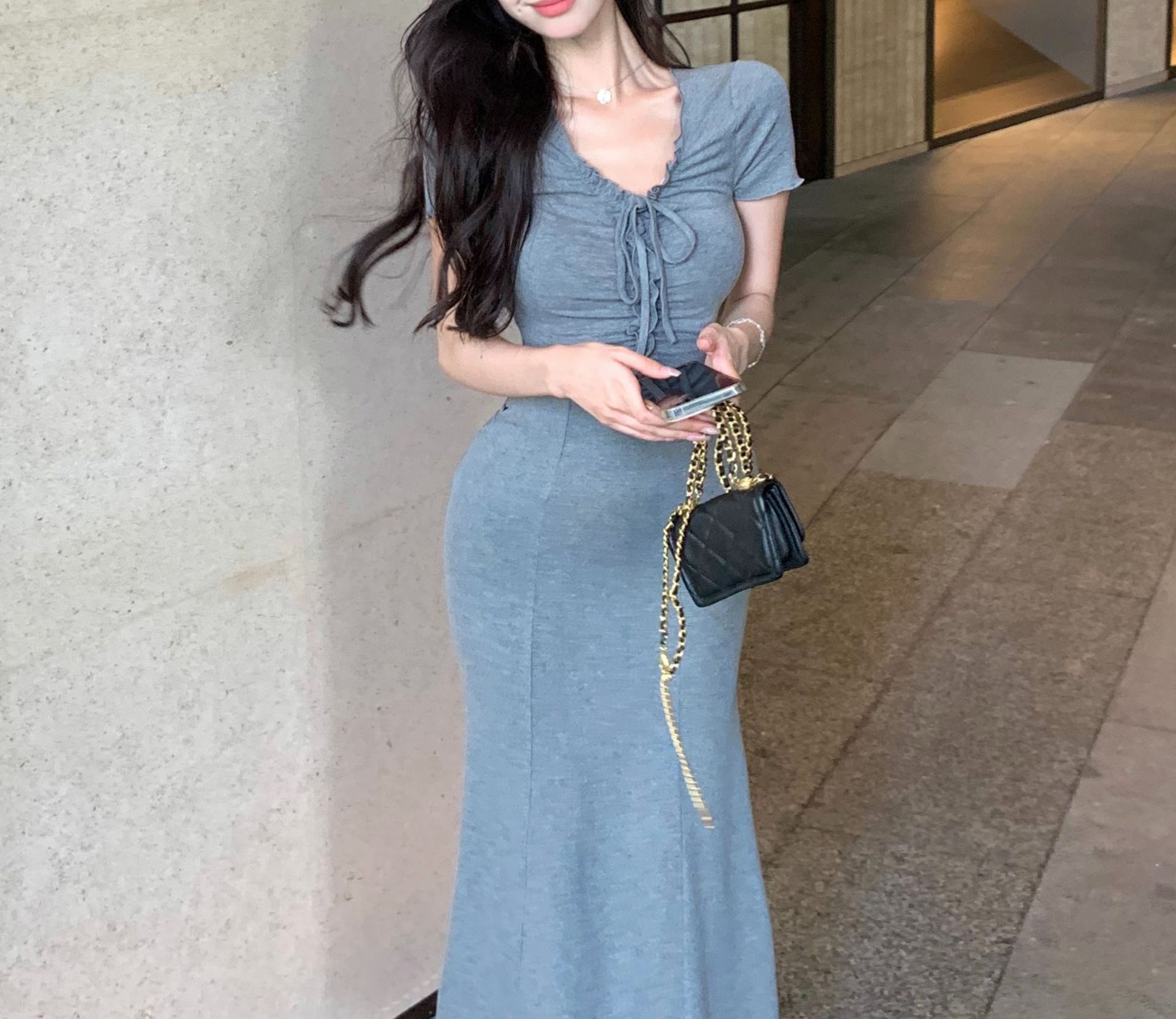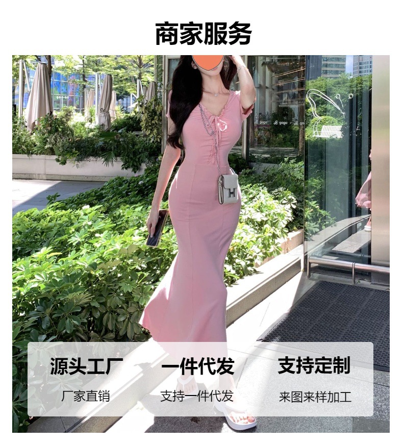 순수 프랑스 왕실 자매 우아한 고급 섹시한 엉덩이 원피스 여성의 여름 허리 스트랩 홀리데이 스타일 피쉬 테일 원피스스토어 가기