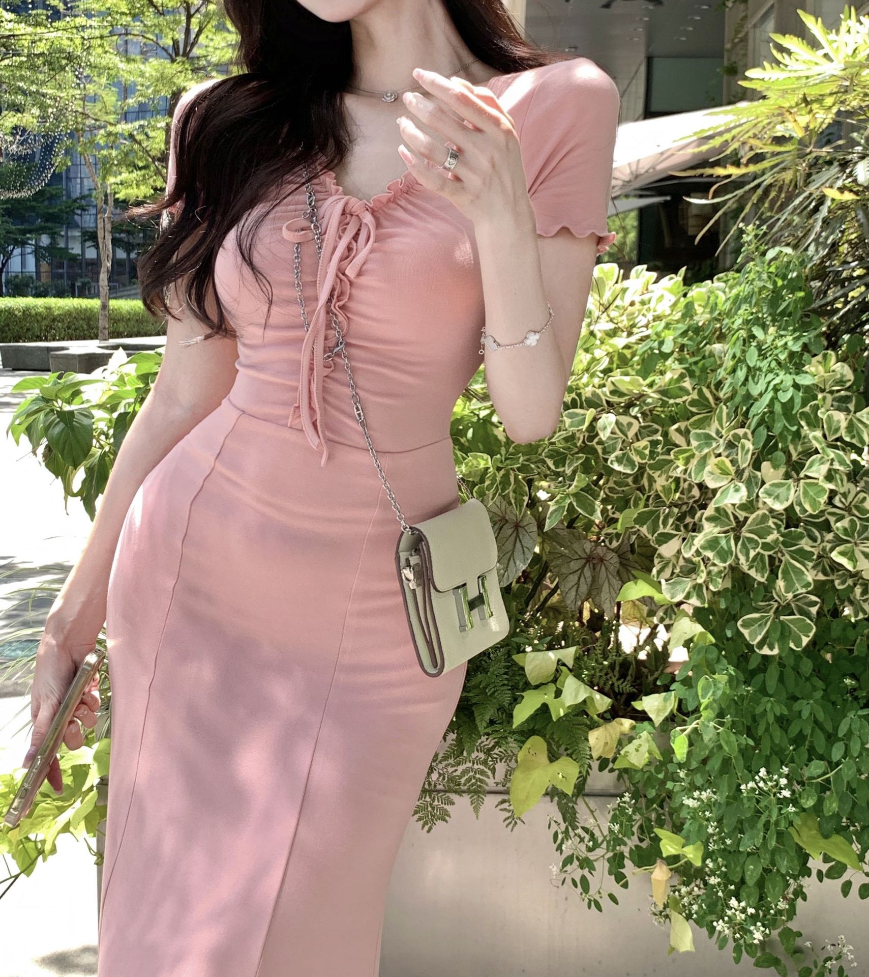 순수 프랑스 왕실 자매 우아한 고급 섹시한 엉덩이 원피스 여성의 여름 허리 스트랩 홀리데이 스타일 피쉬 테일 원피스