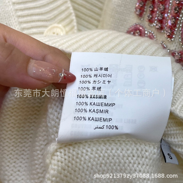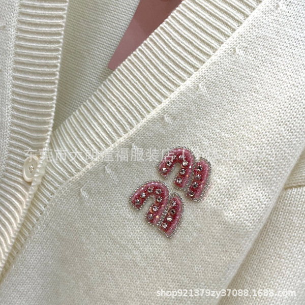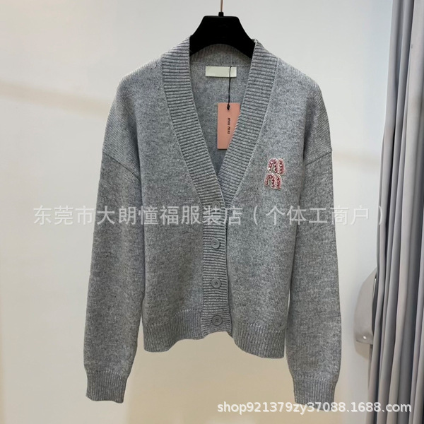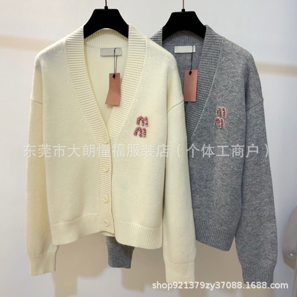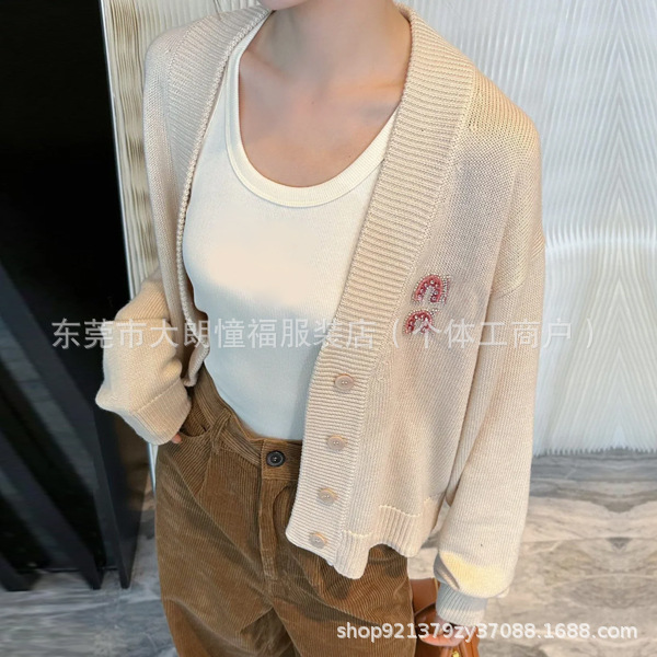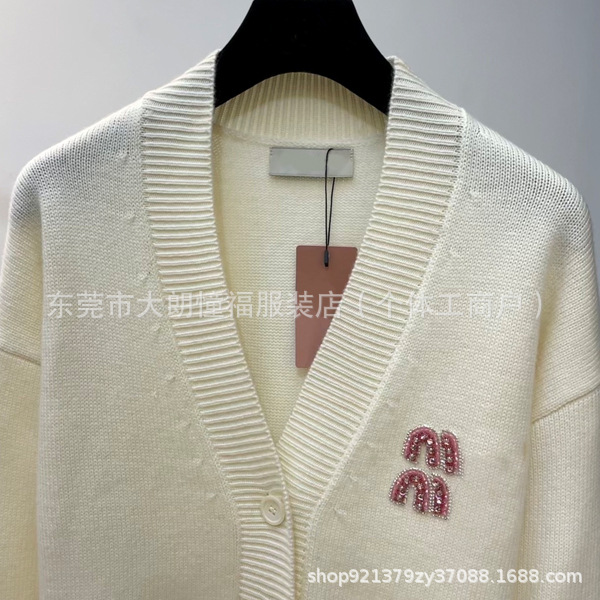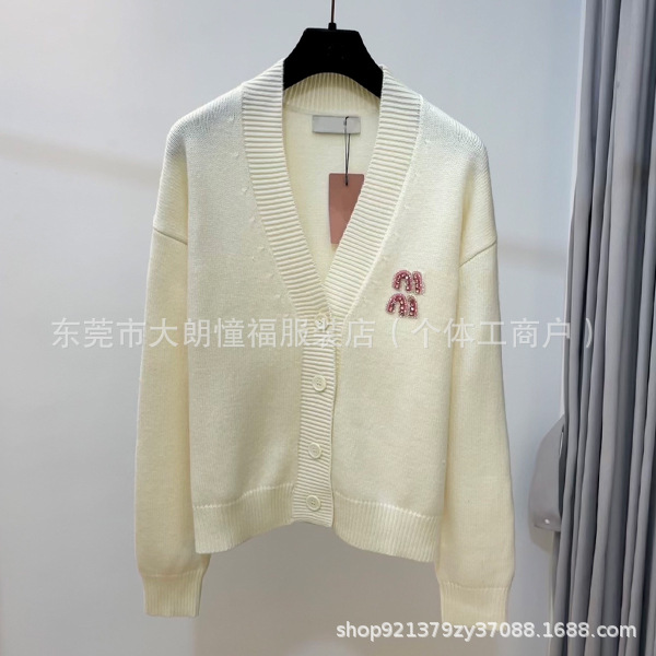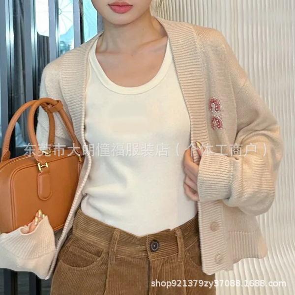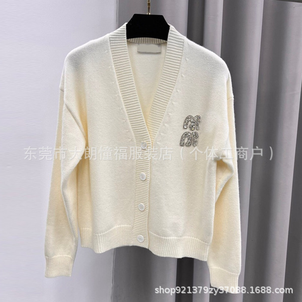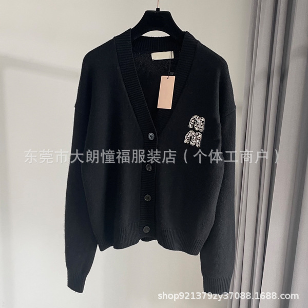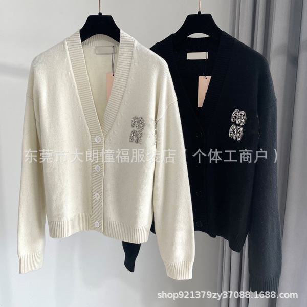 2024 Nanyou 고급 유럽 용품 Rhinestone 편지 로고 가을과 겨울 캐시미어 카디건 시대 감소 긴 소매 V 넥 재킷 탑