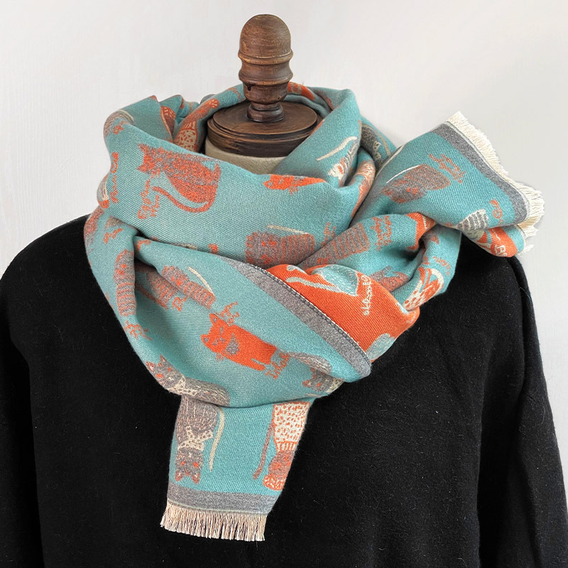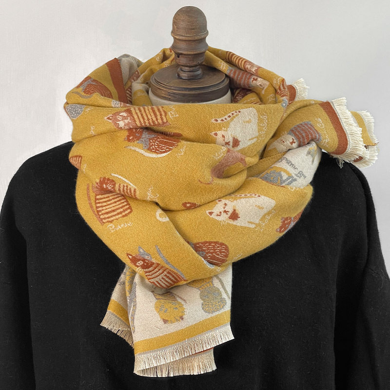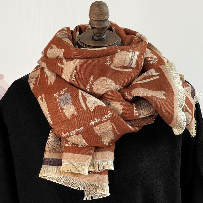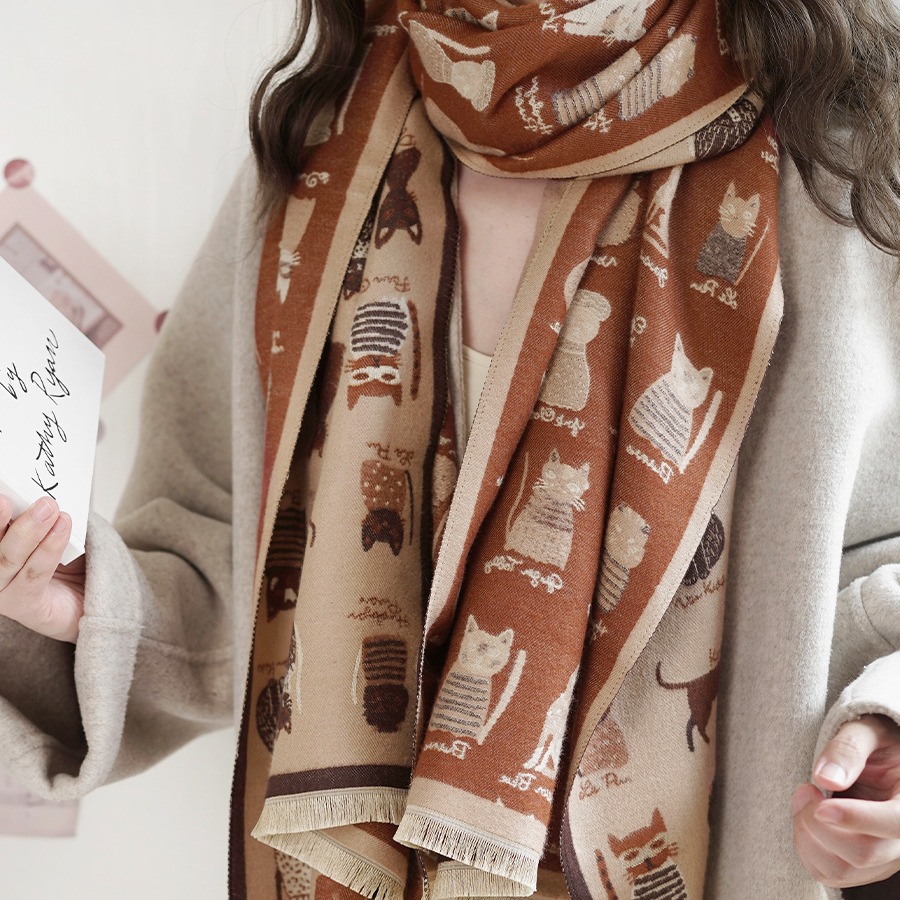 귀여운 고양이 ~ 무거운 양면 스카프 여자 겨울 올매치 두꺼운 따뜻한 캐시미어 고급 목도리 스카프스토어 가기