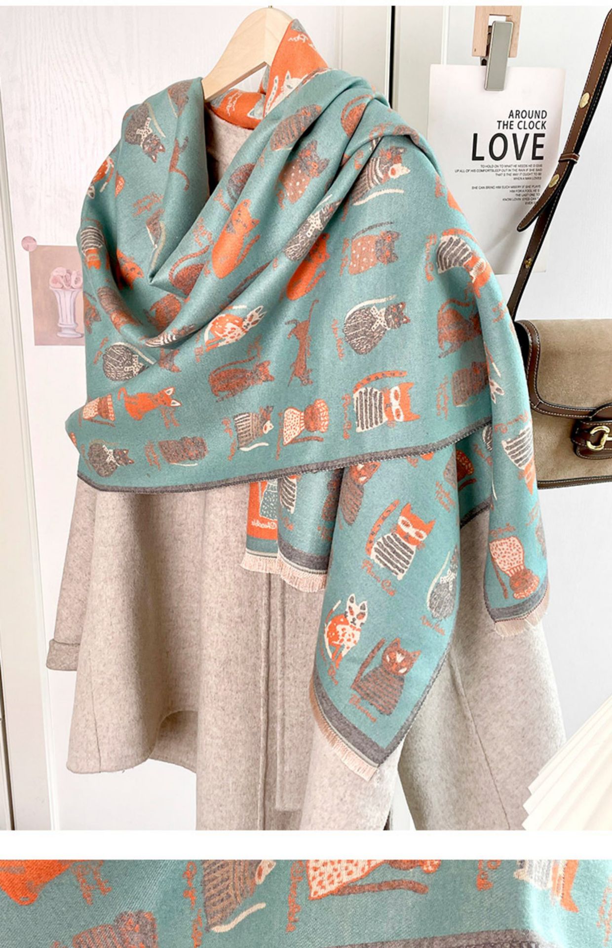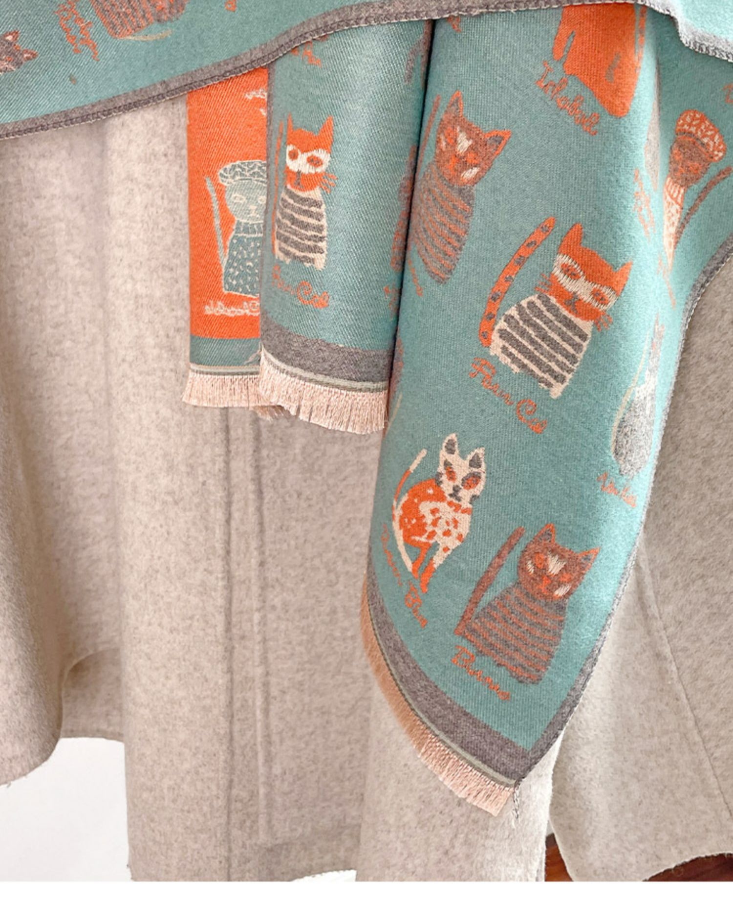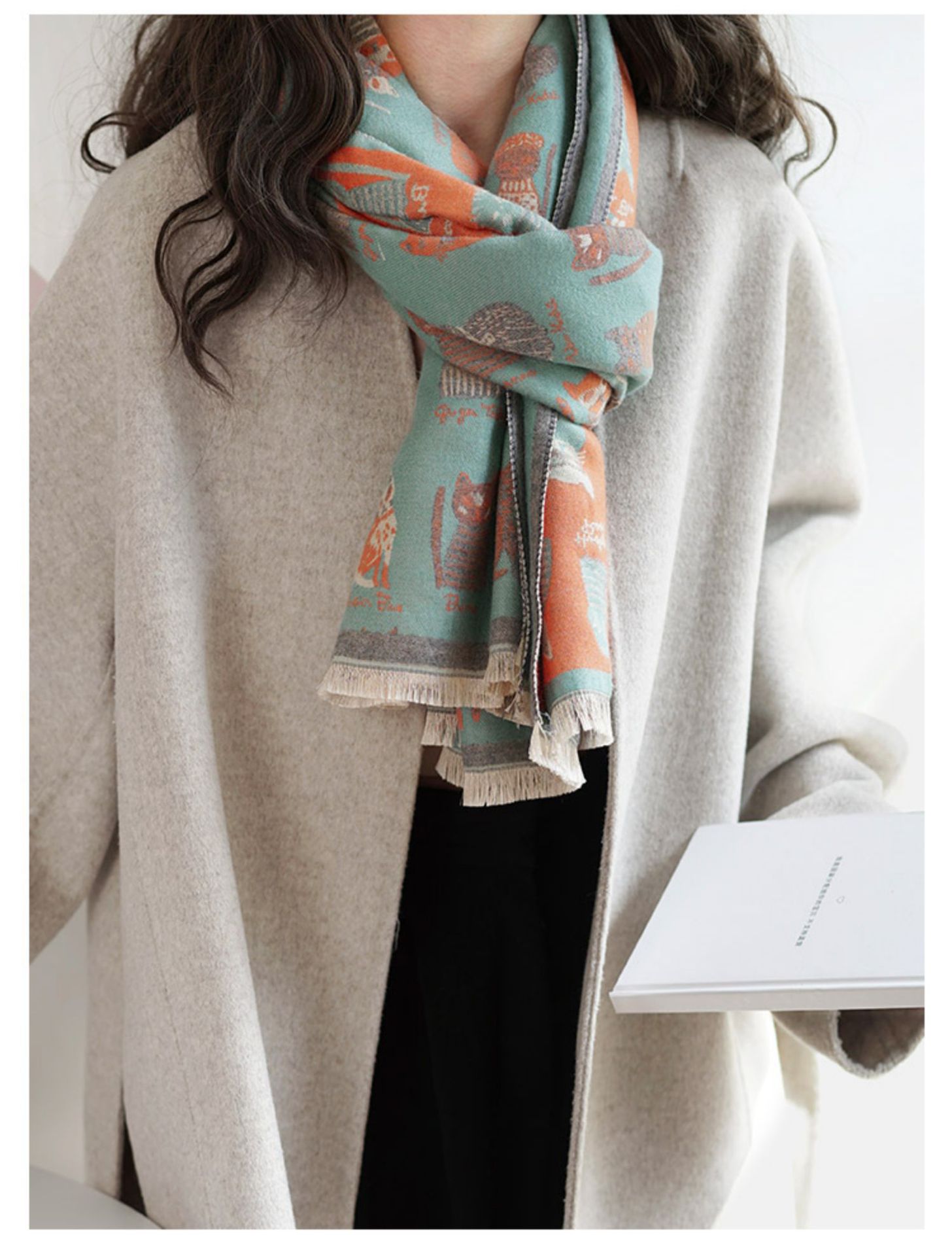 귀여운 고양이 ~ 무거운 양면 스카프 여자 겨울 올매치 두꺼운 따뜻한 캐시미어 고급 목도리 스카프스토어 가기