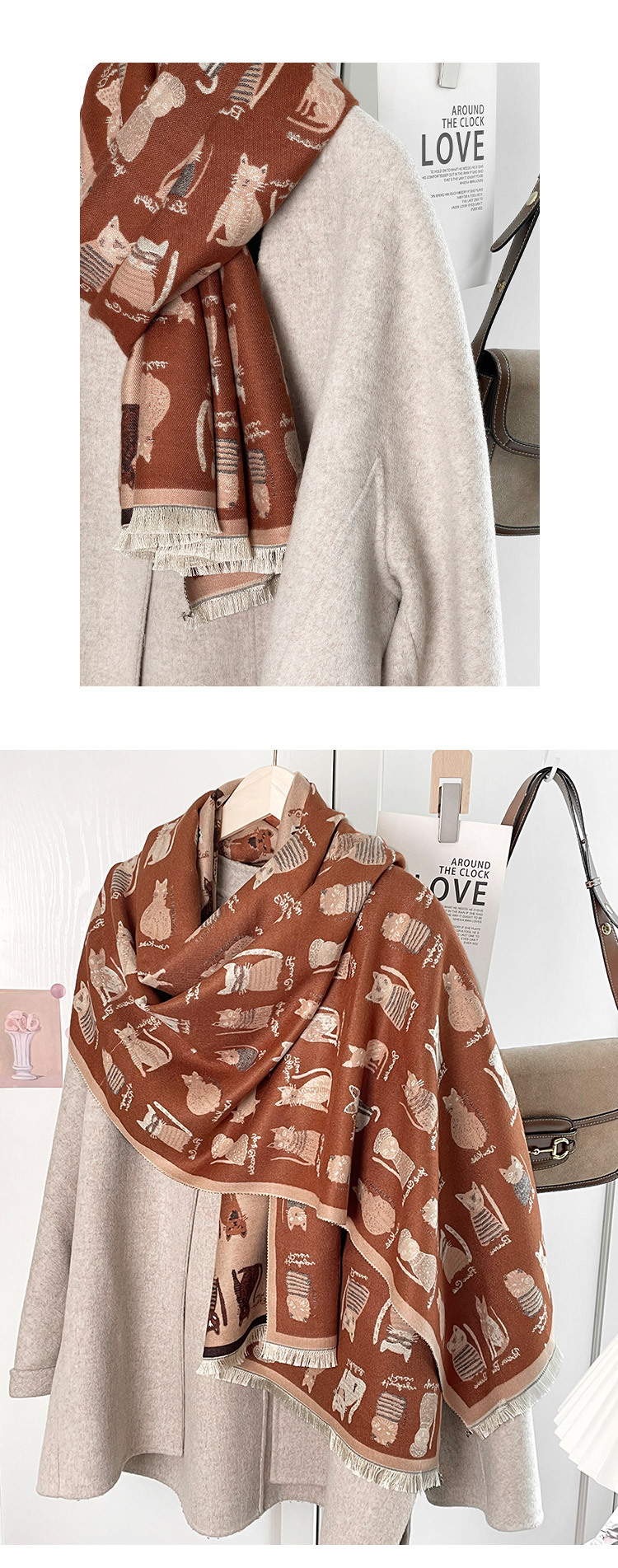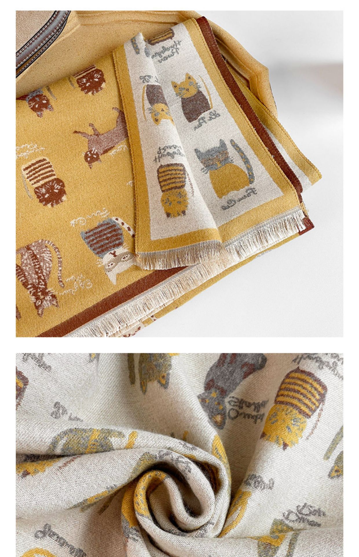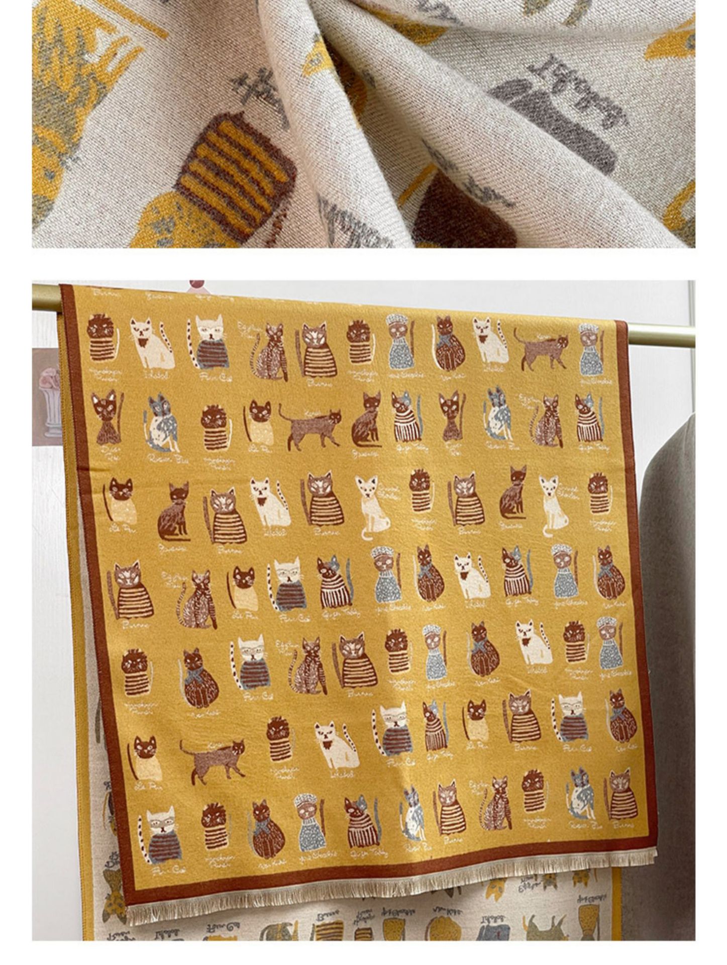 可爱猫咪~重磅双面围巾女冬季百搭加厚保暖仿羊绒高级感披肩围脖