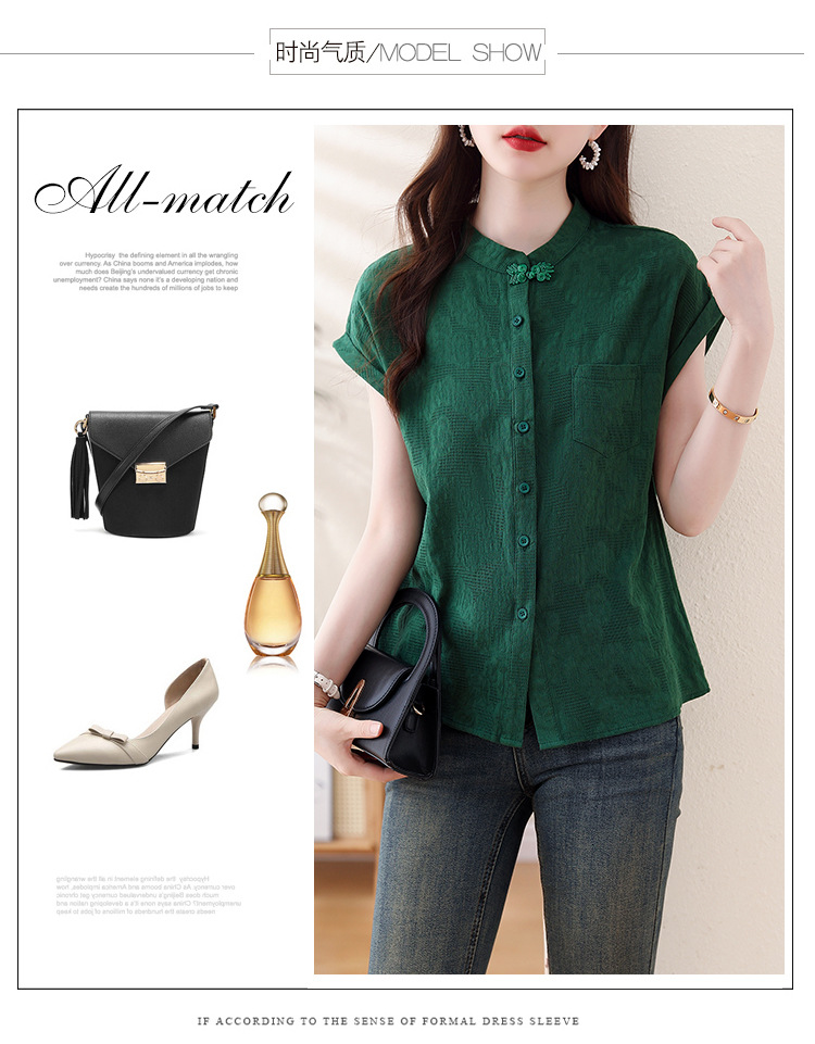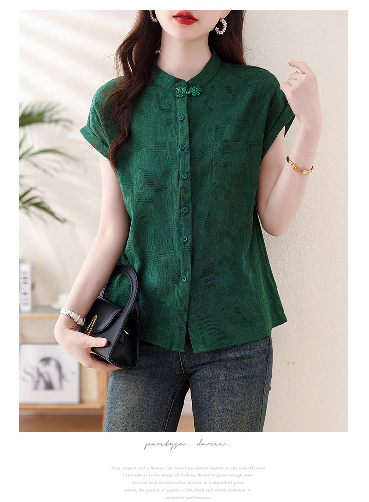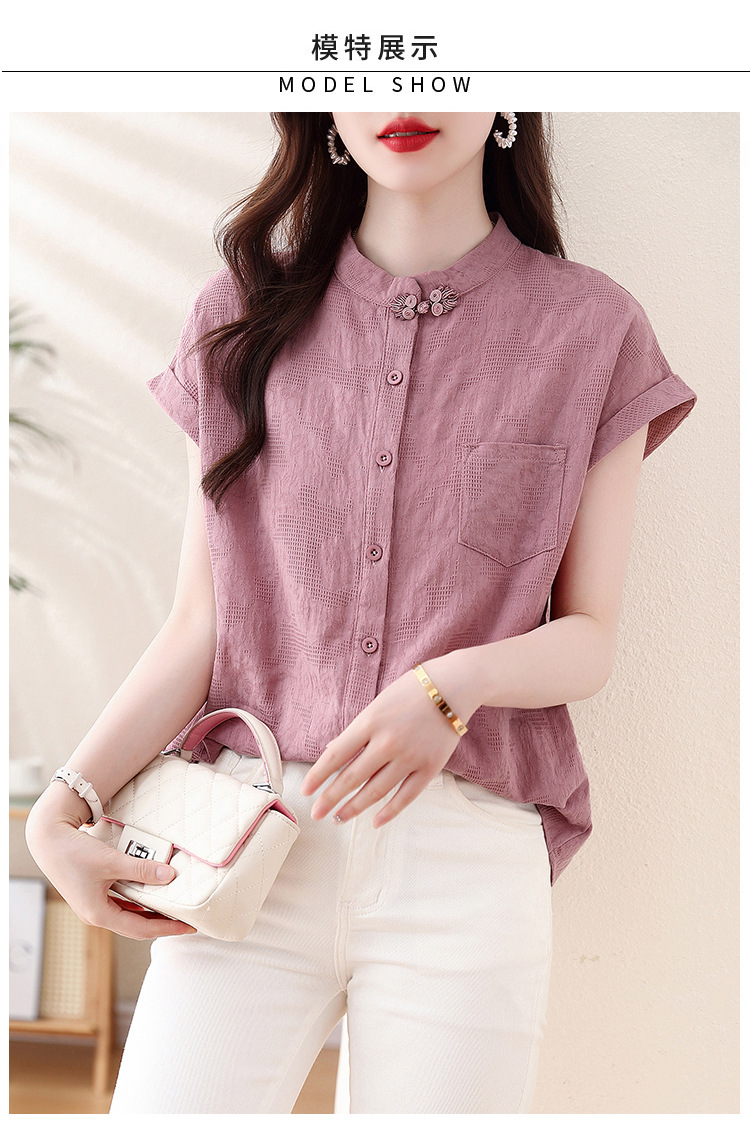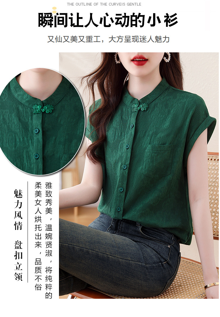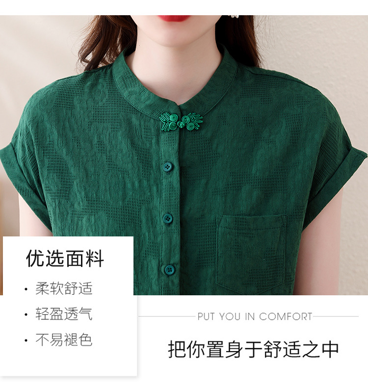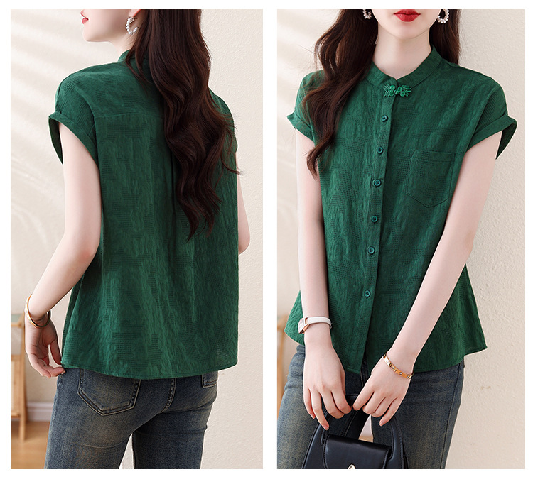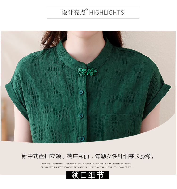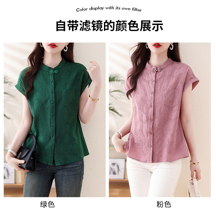 2024 여름 새로운 새로운 중국 스타일 국가 스타일 버클 짧은 소매 셔츠 슬림 베이스 코트 여성 도매스토어 가기