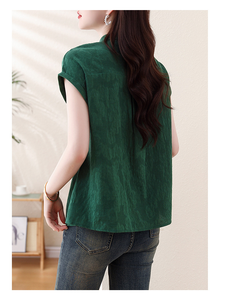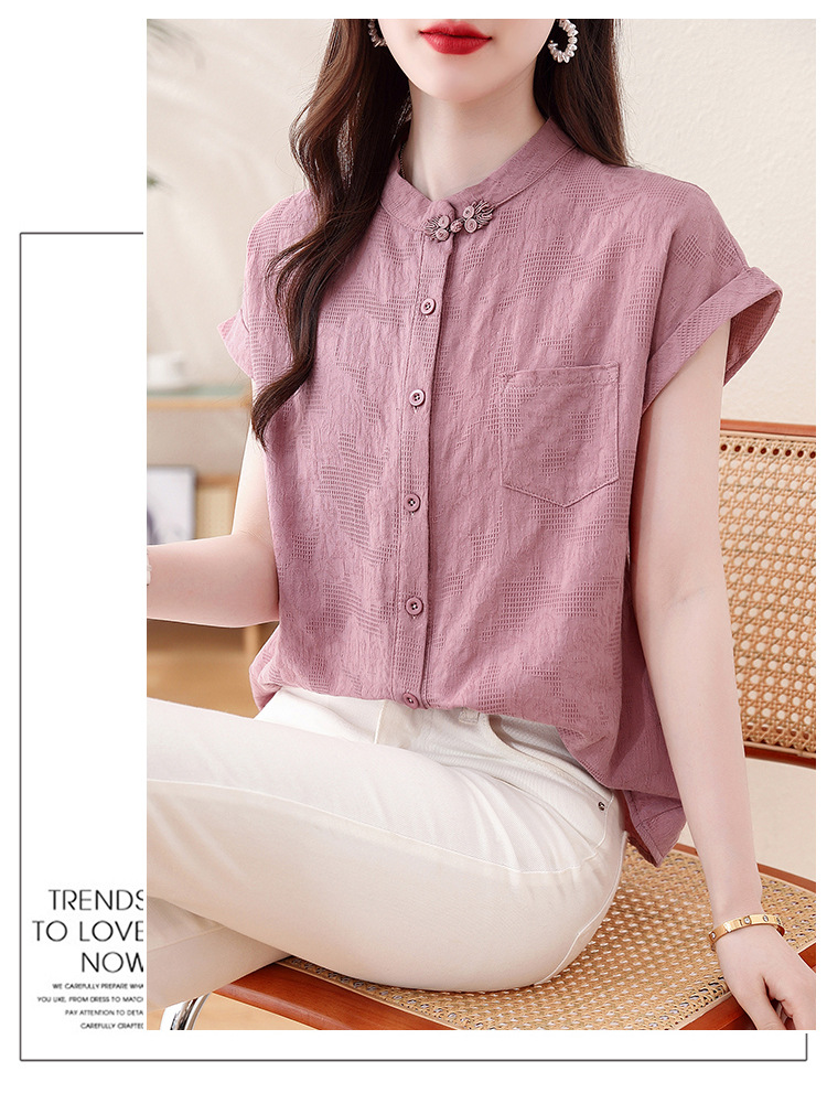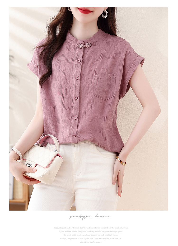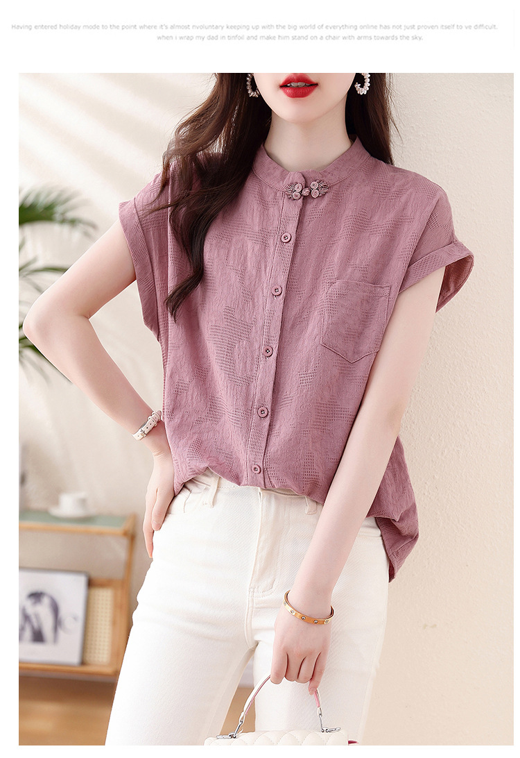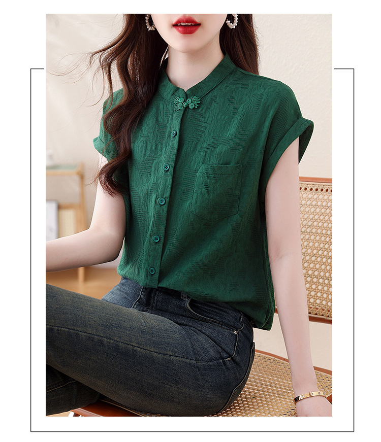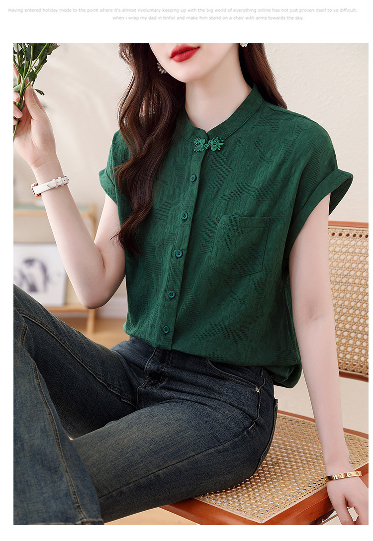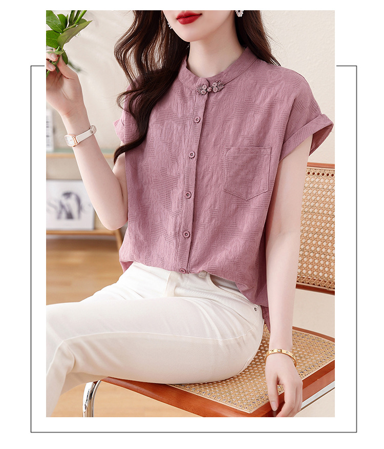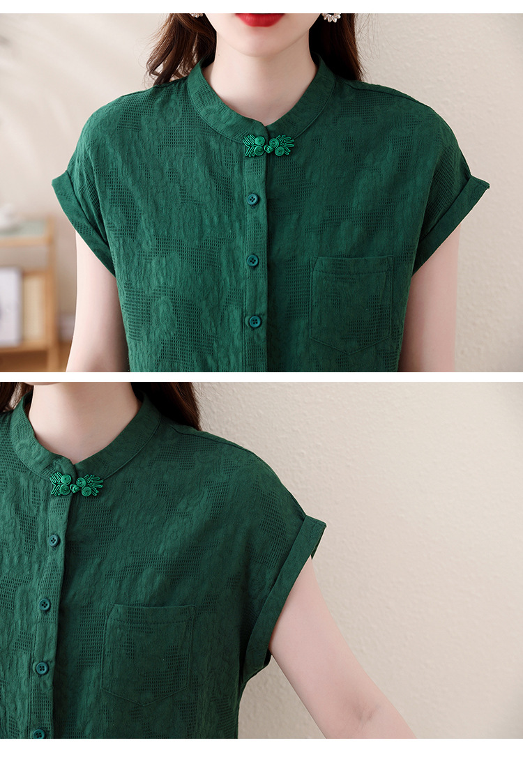2024 여름 새로운 새로운 중국 스타일 국가 스타일 버클 짧은 소매 셔츠 슬림 베이스 코트 여성 도매스토어 가기