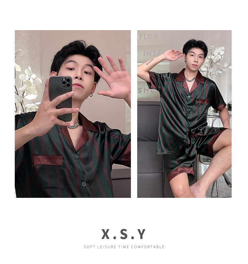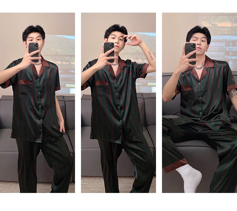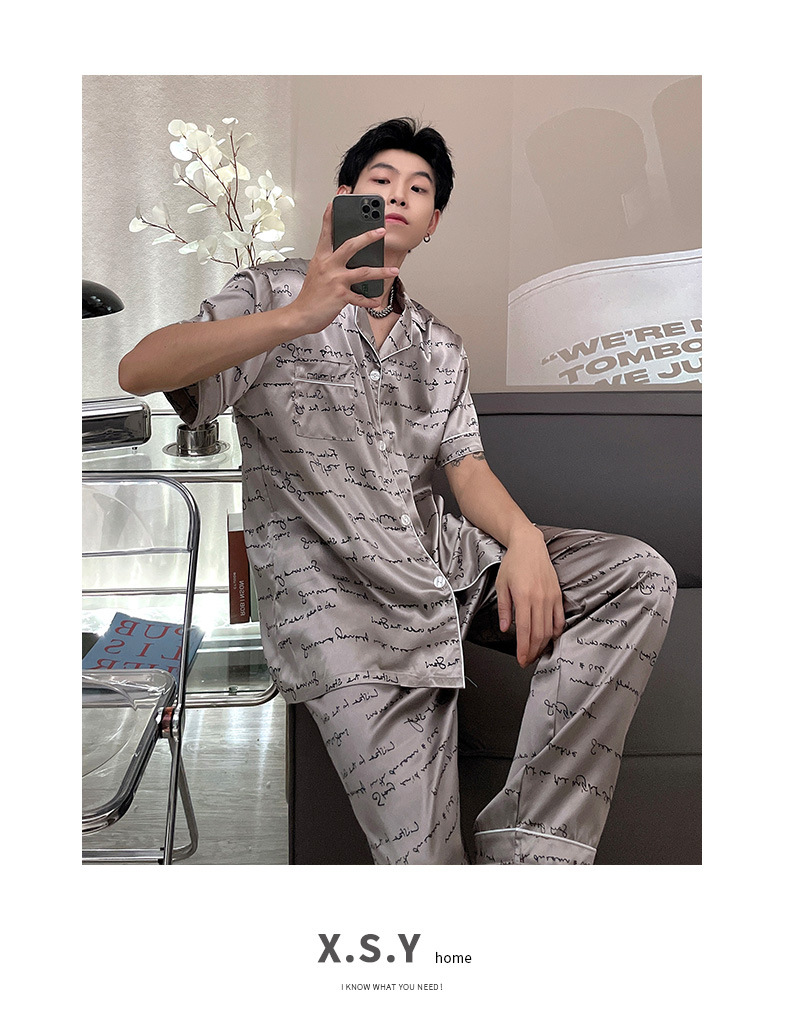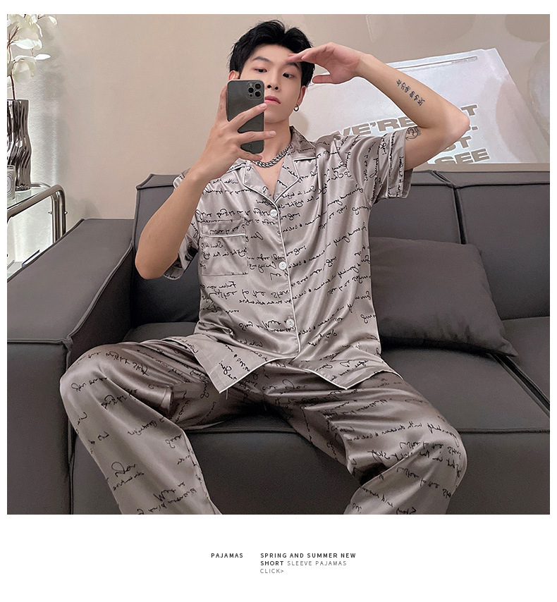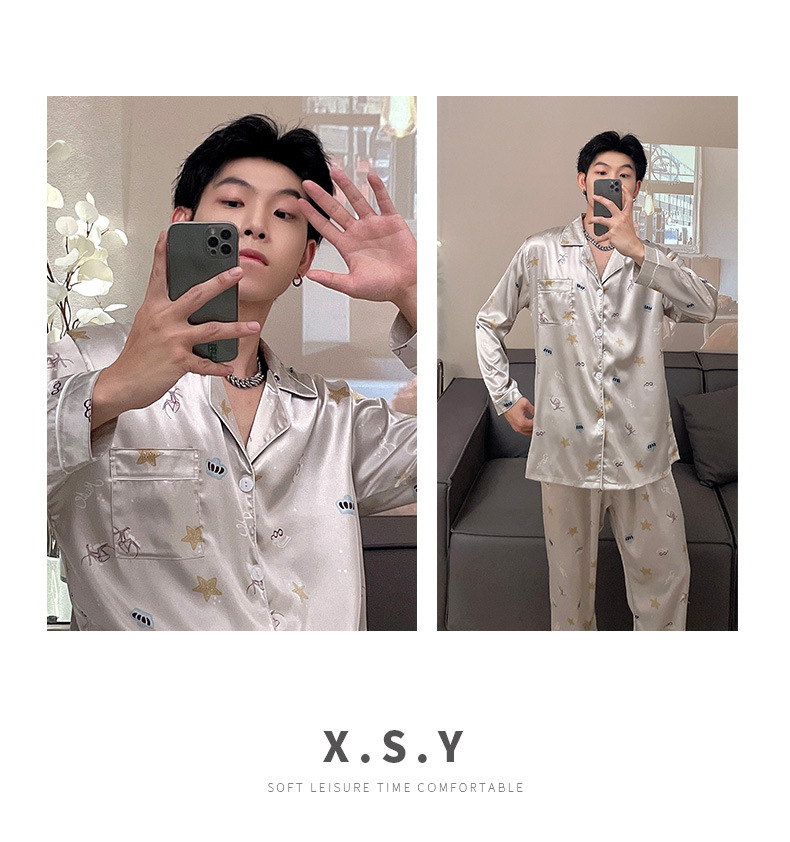 남자 아이스 실크 봄과 가을 잠옷 남자 여름 긴팔 바지 플러스 사이즈 잘 생긴 간단한 겉옷 세트스토어 가기