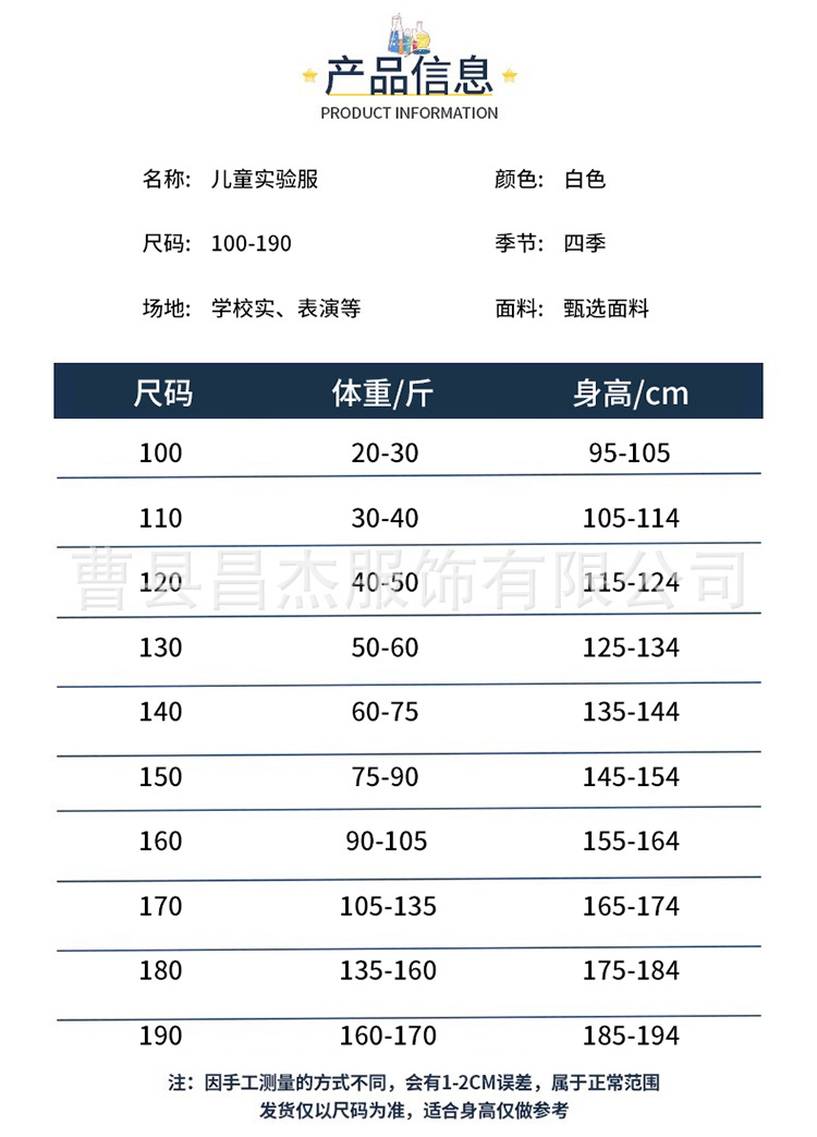어린이 흰색 코트 초등학교 학생들의 과학 실험실 세트 유치원 의사 세트 어린이 작업 롤 플레잉 세트 도매