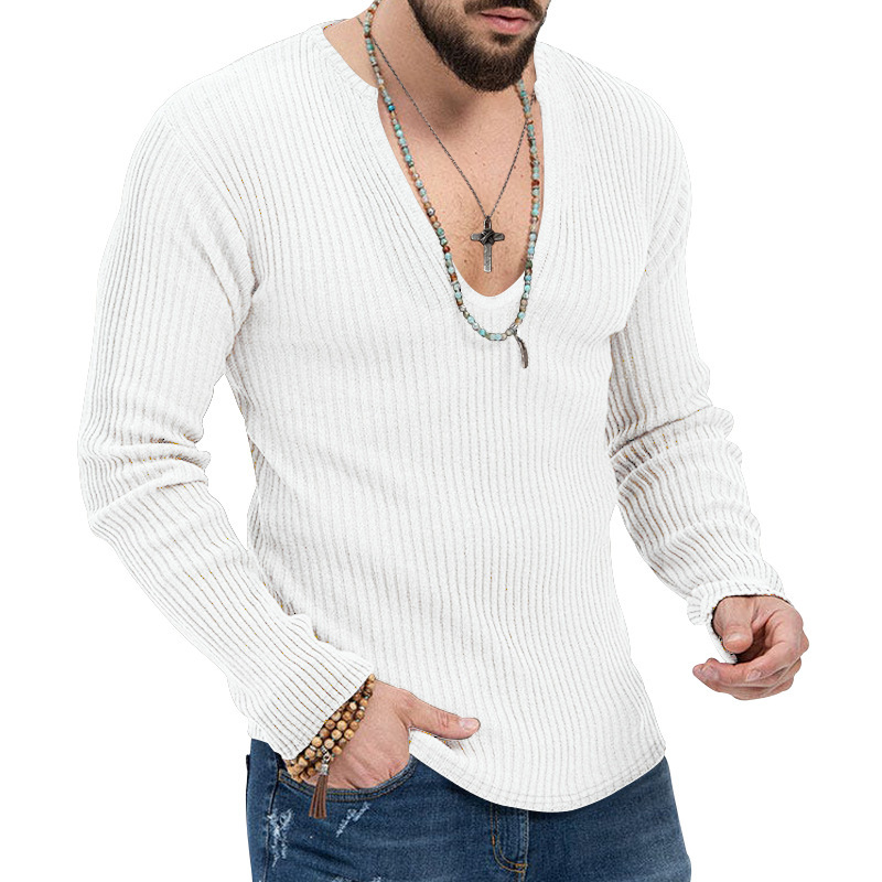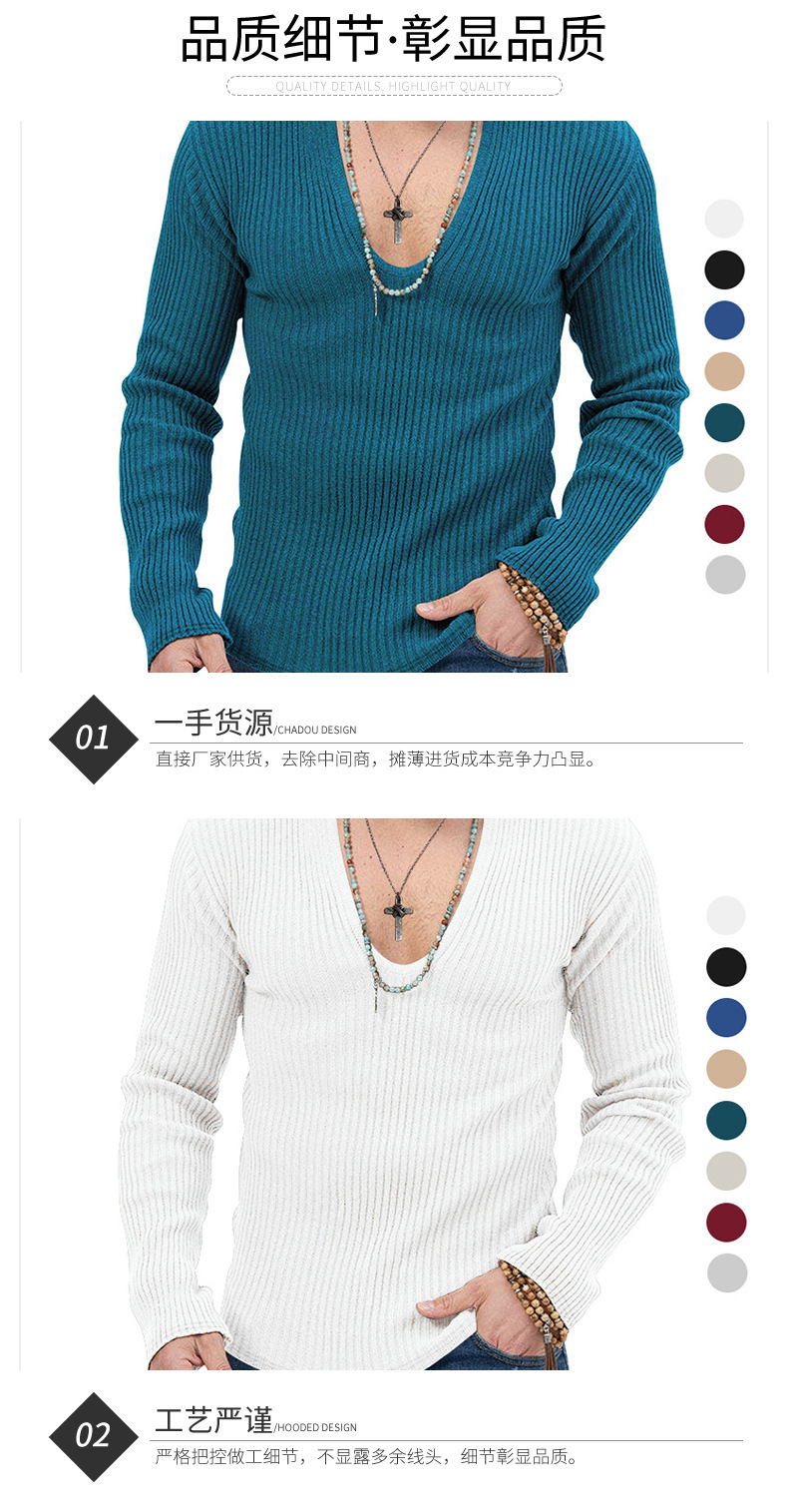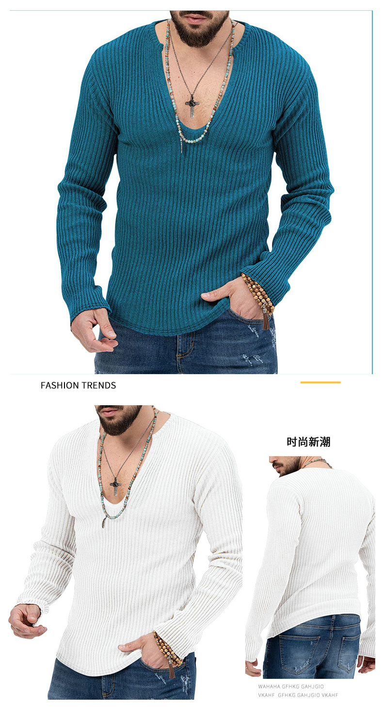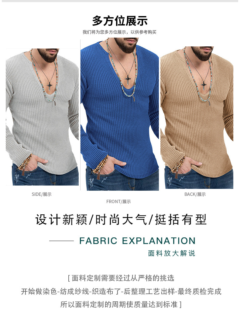 아마존 유럽 및 미국 국경 간 2025 유럽 및 미국 남성 트렌디 봄, 가을 깊은 V 넥 남성 신작 솔리드 컬러 니트 긴팔 셔츠스토어 가기