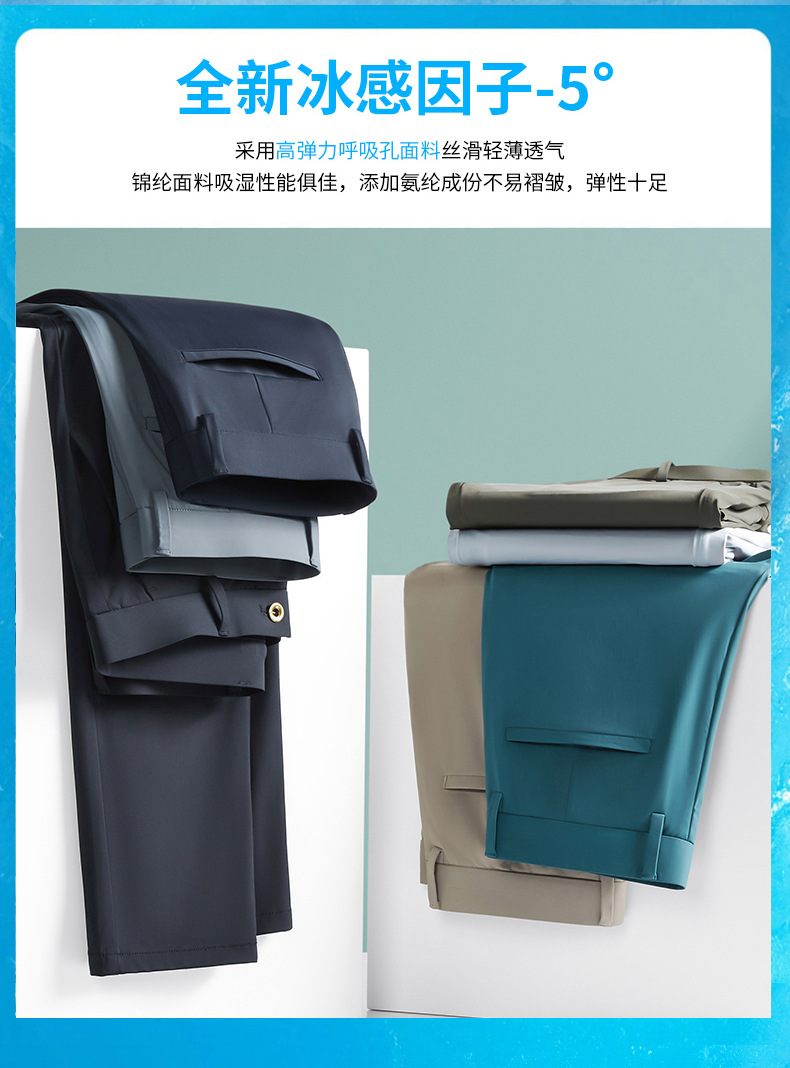 商务透气休闲裤男士秋季厚款弹力直筒裤男装潮流百搭冰丝运动长裤스토어 가기