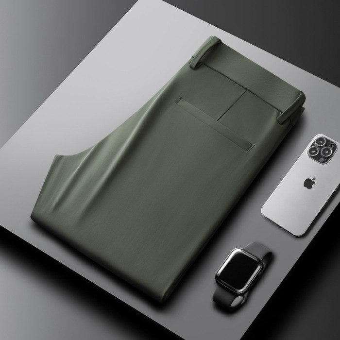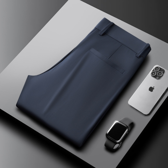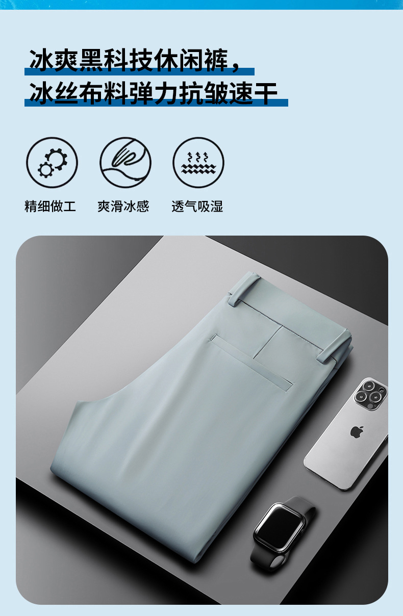 商务透气休闲裤男士秋季厚款弹力直筒裤男装潮流百搭冰丝运动长裤