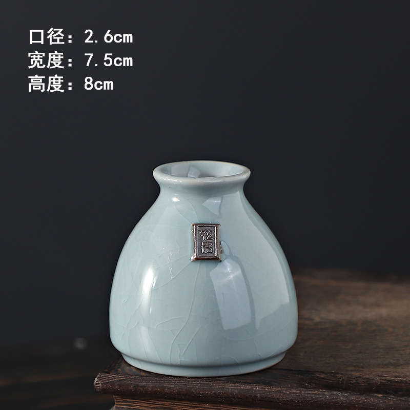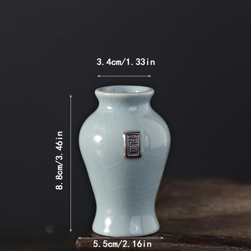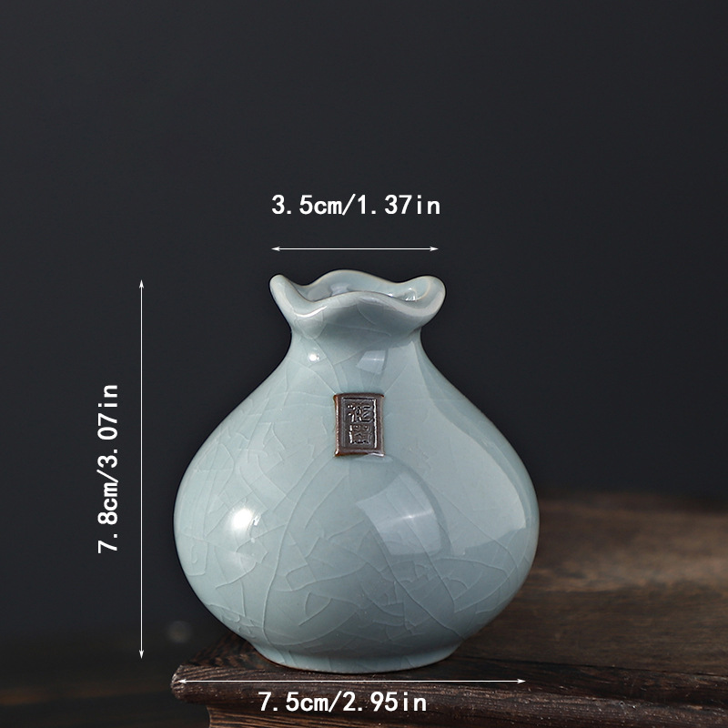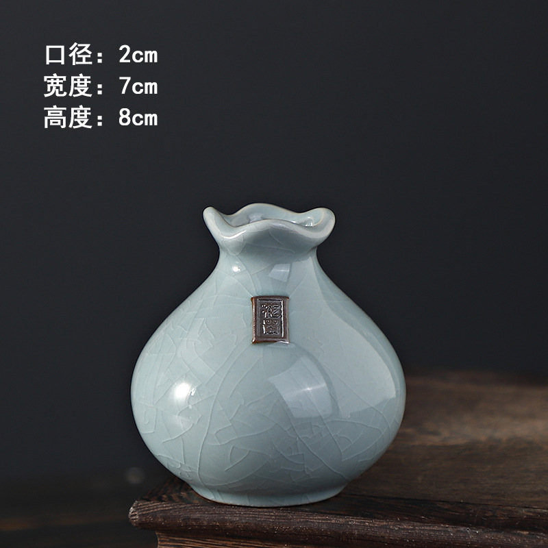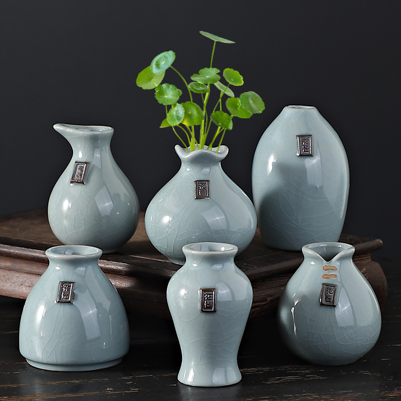 Ge 가마 세라믹 꽃병 도매 중국 미니 작은 꽃병 꽃 장식품 구리 돈 잔디 녹색 장미 수경 식물 꽃