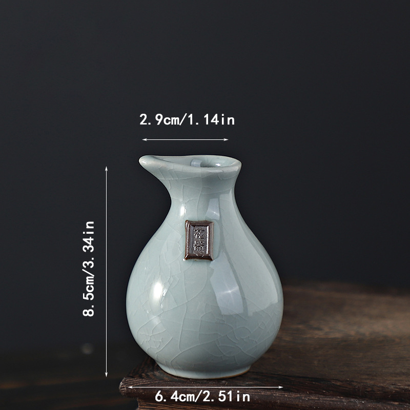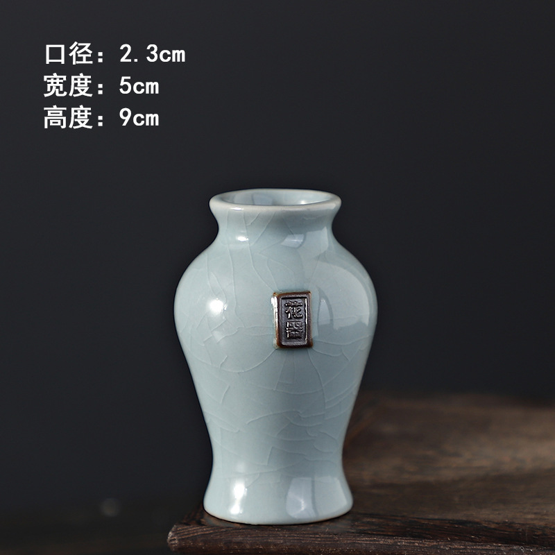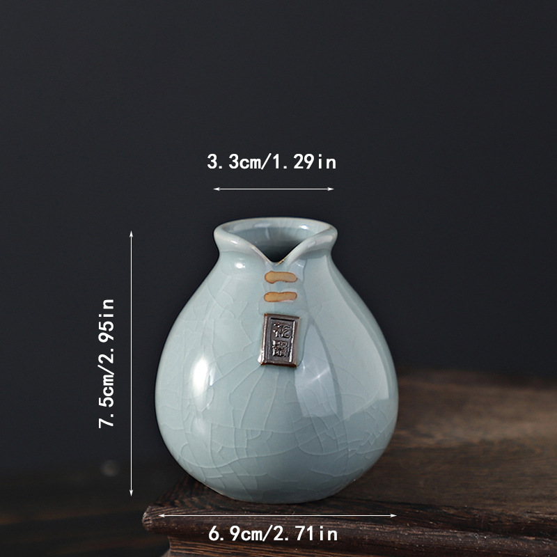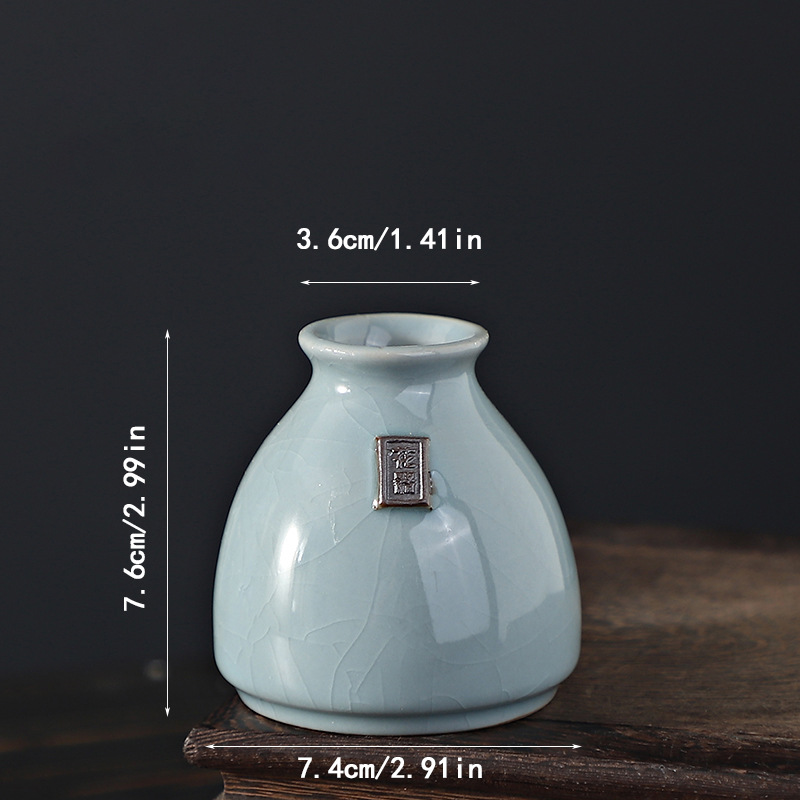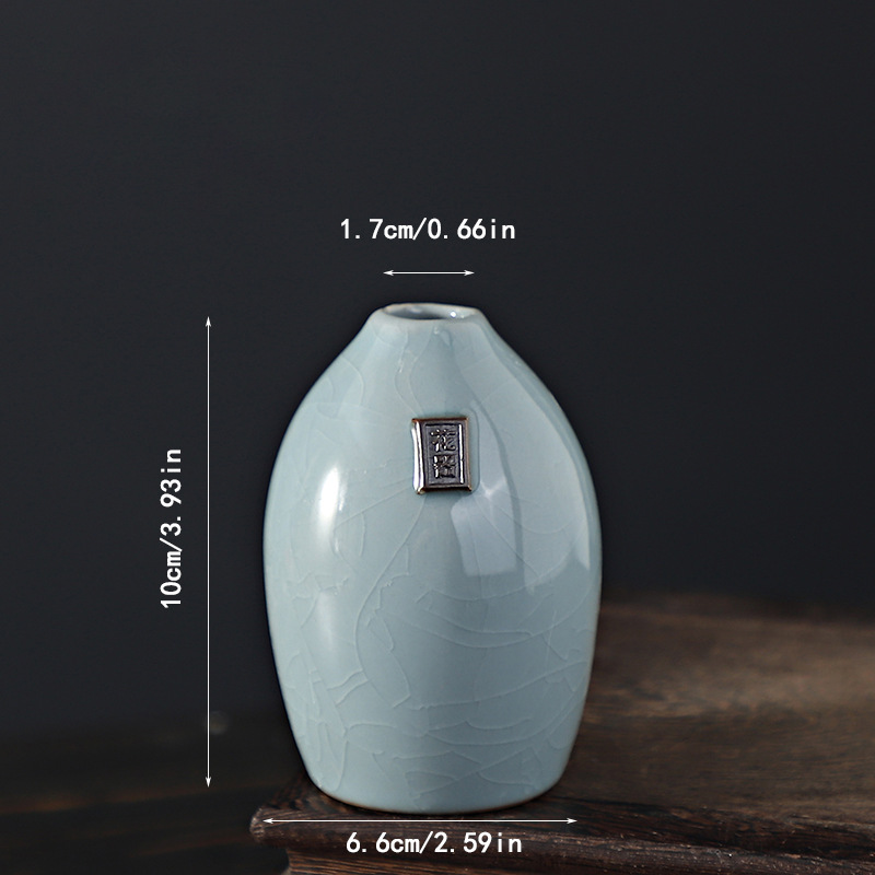 Ge 가마 세라믹 꽃병 도매 중국 미니 작은 꽃병 꽃 장식품 구리 돈 잔디 녹색 장미 수경 식물 꽃