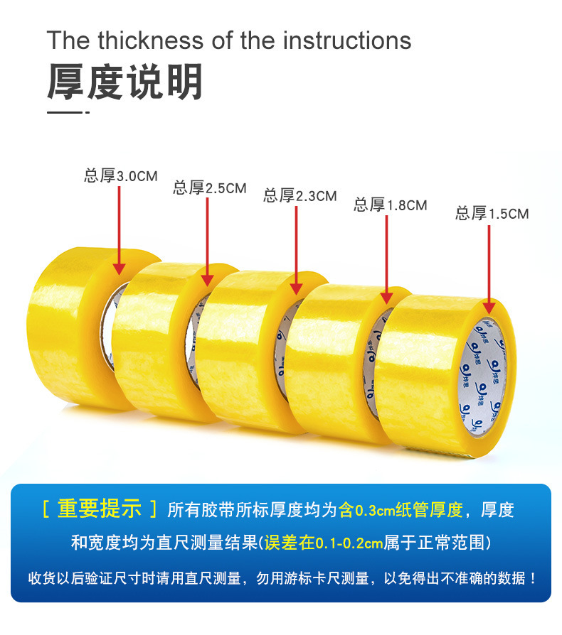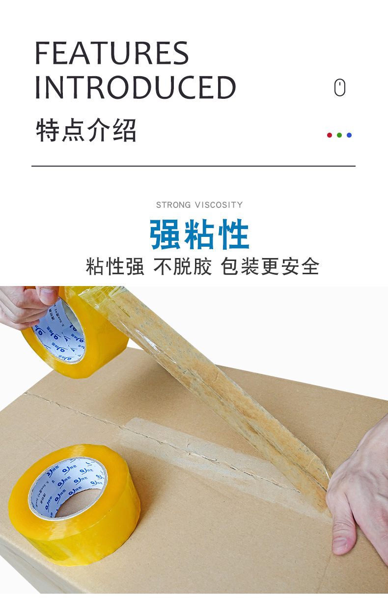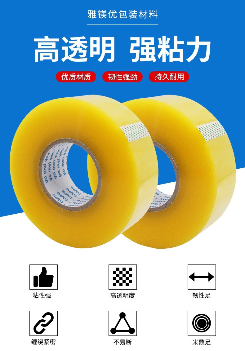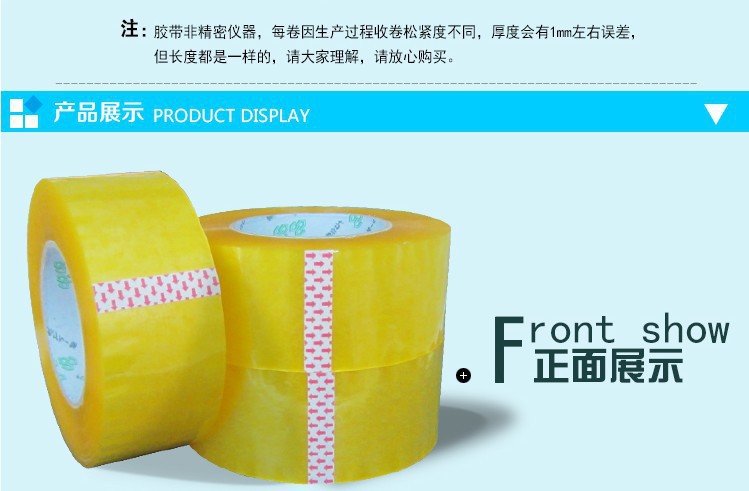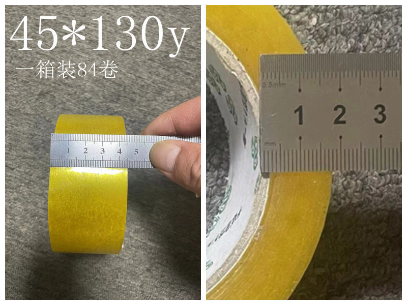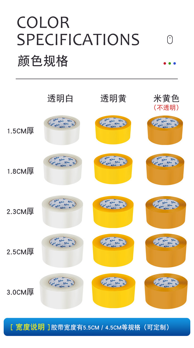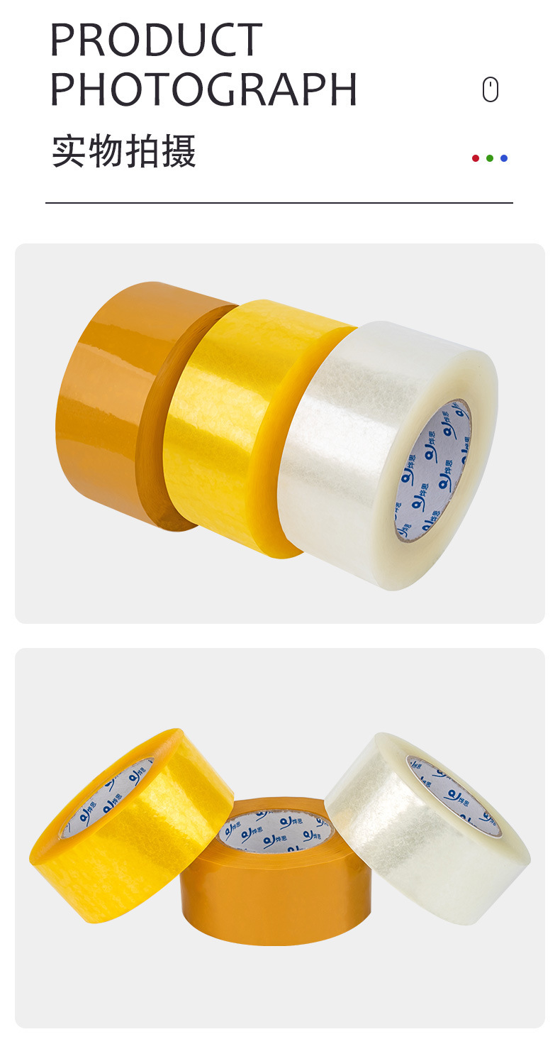 • 투명한 노란색; 폭 5.0cm × 두께 1.4cm × 길이 100y (전체 상자에 72롤)