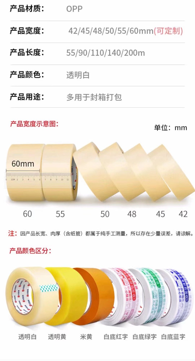 공장 도매 밀봉 테이프 5.5cm 대형 롤 익스프레스 포장 투명 테이프 베이지 테이프 투명 테이프스토어 가기