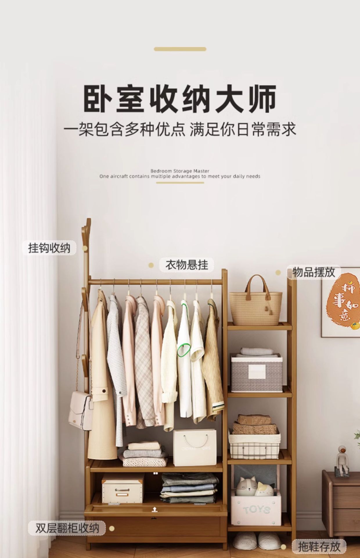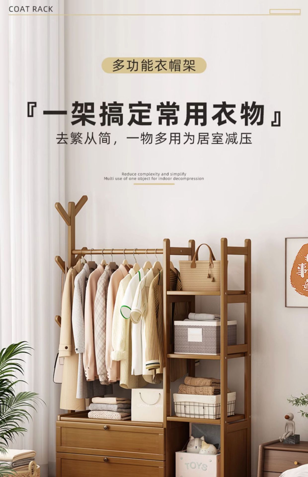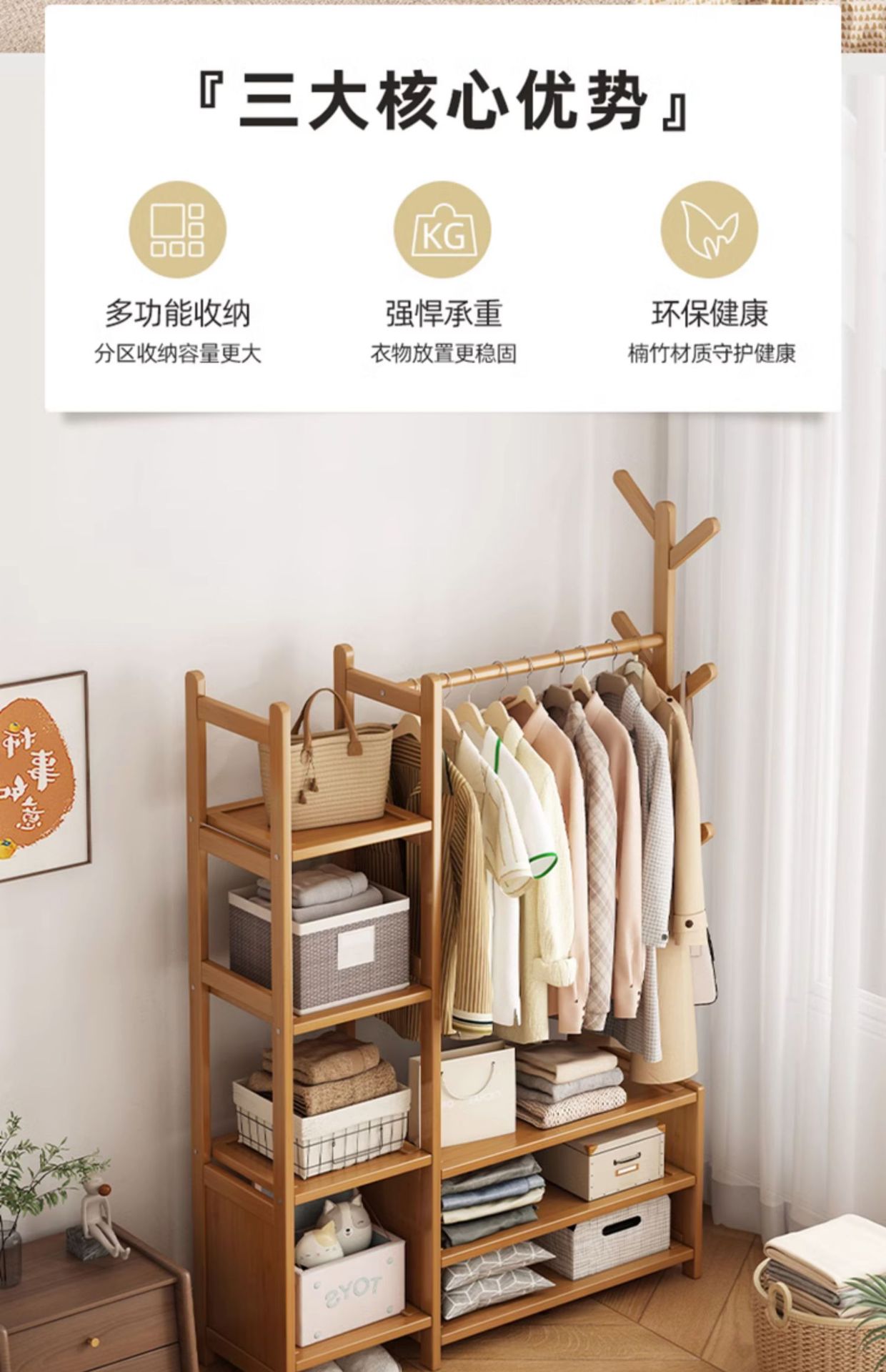 옷걸이 나무 다기능 옷걸이 스탠드형 침실 가정용 수납장 포함 침대 옆 밤에 옷 보관스토어 가기