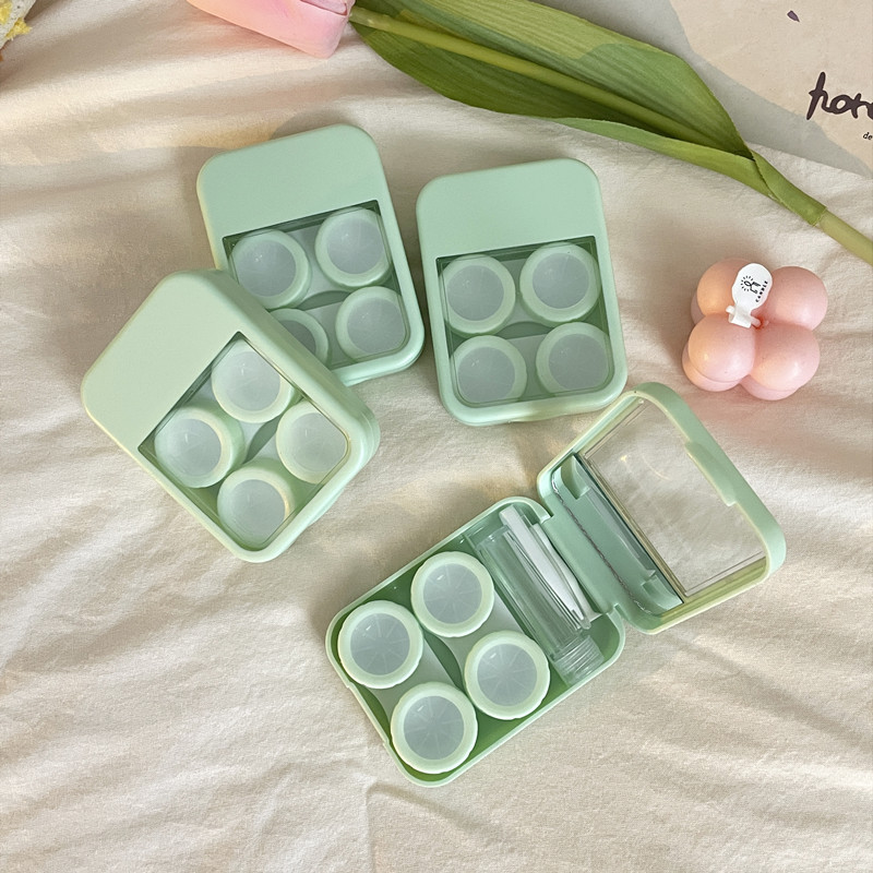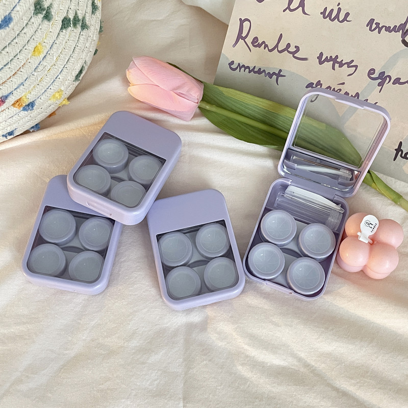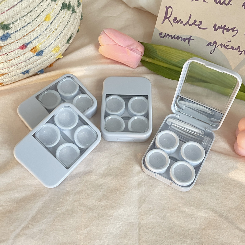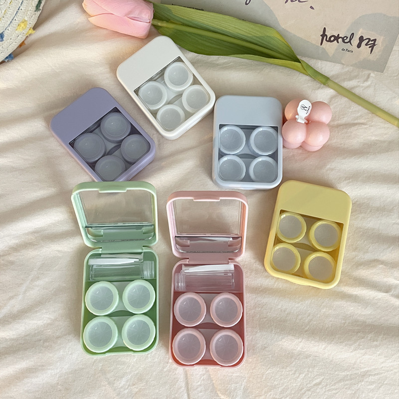 간단한 크림 컬러 콘택트 렌즈 케이스 휴대용 미러 인 뷰티 학생 상자 스토리지 듀얼 페어 컴패니언 박스 2 쌍 팩스토어 가기