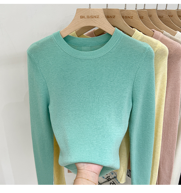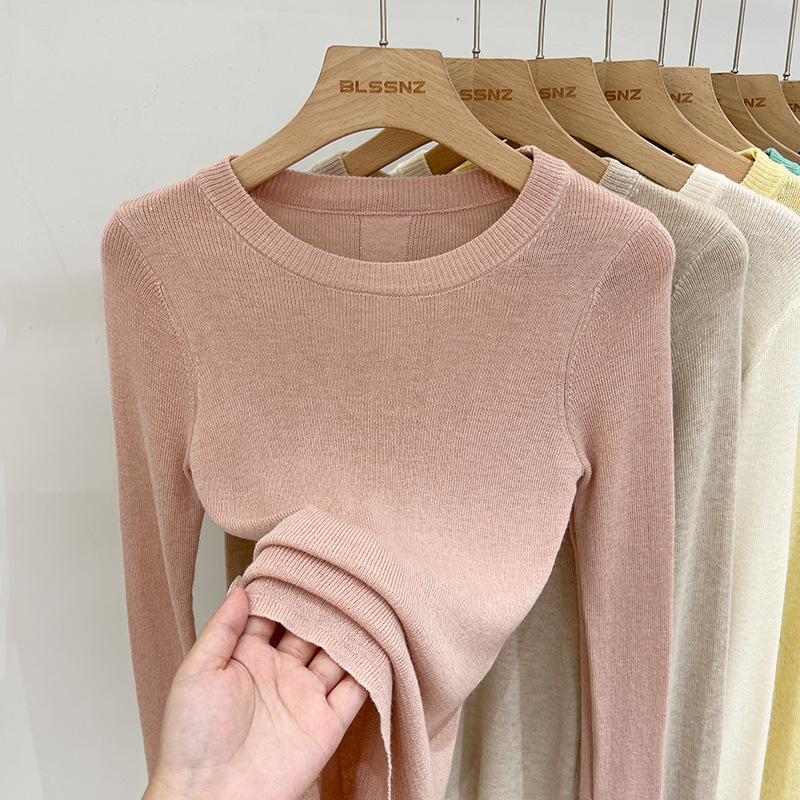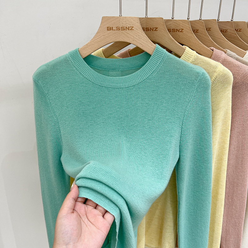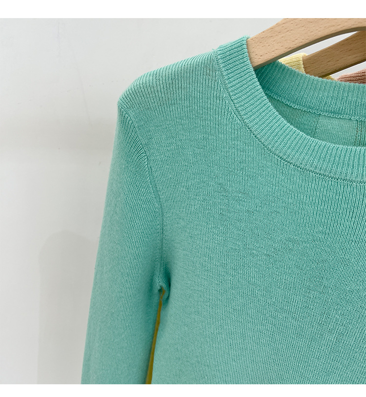 녹색 긴팔 니트 티셔츠 여자 여름 탑 2024 새로운 간단한 올 매치 숄더베이스 셔츠 여성용 얇은스토어 가기