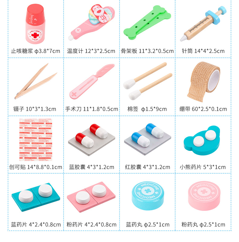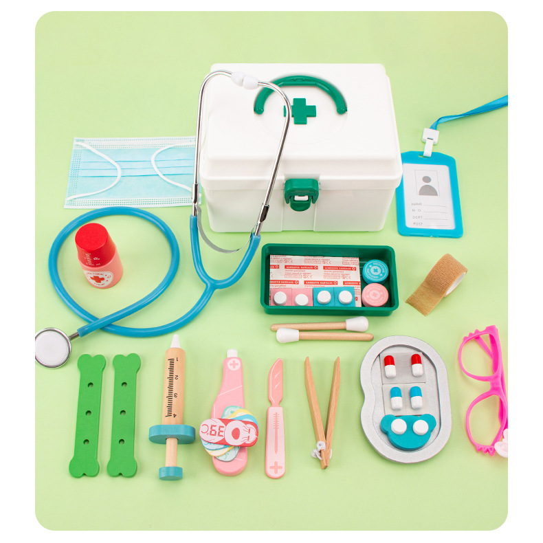 유아 청진기 주입 의료 상자 세트 조기 교육 교육 놀이 집 장난감을 재생하는 어린이 나무 의사스토어 가기