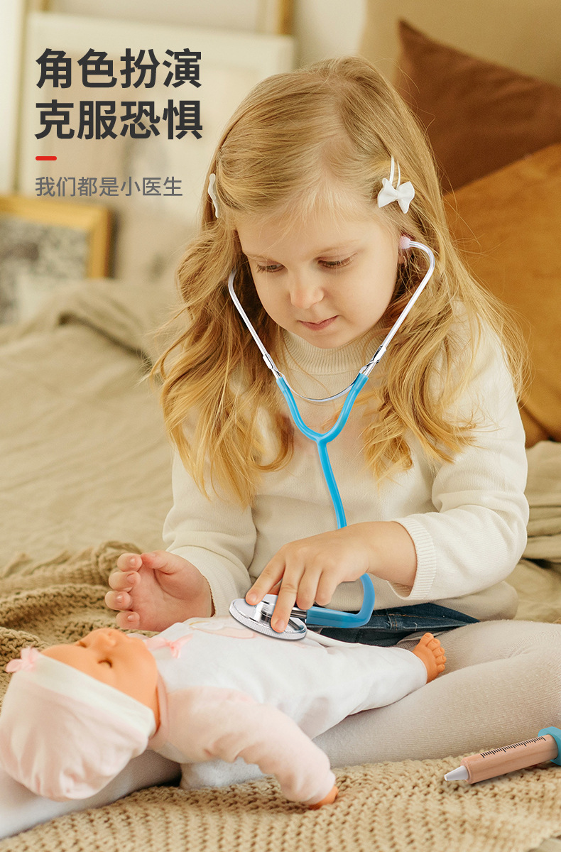 유아 청진기 주입 의료 상자 세트 조기 교육 교육 놀이 집 장난감을 재생하는 어린이 나무 의사