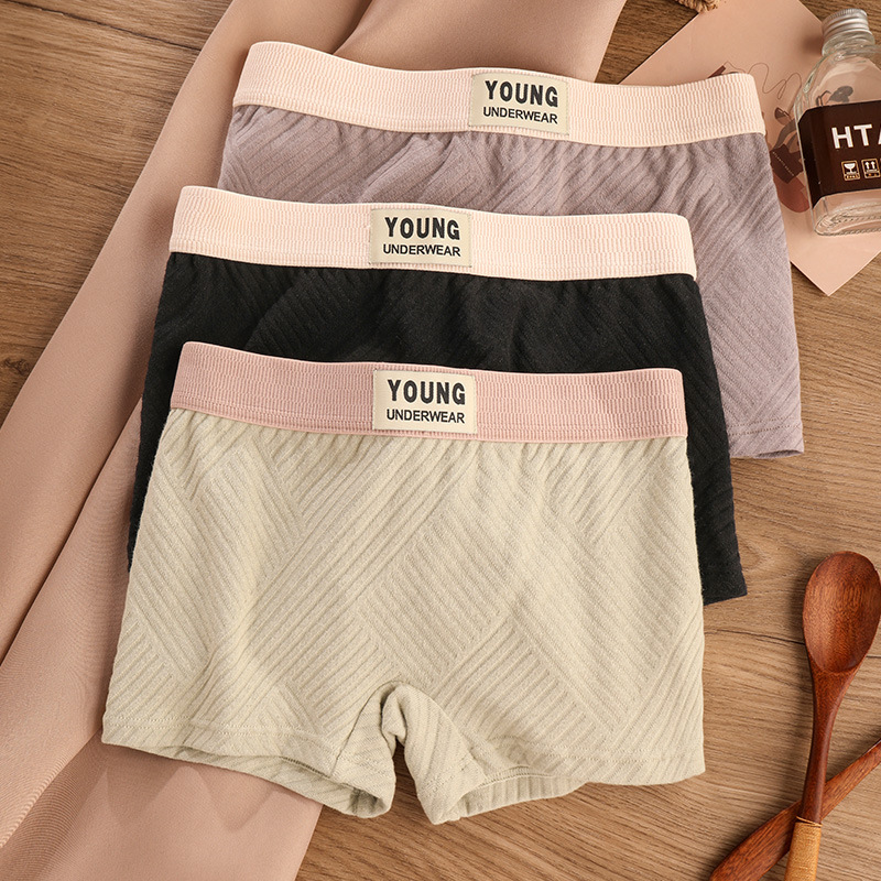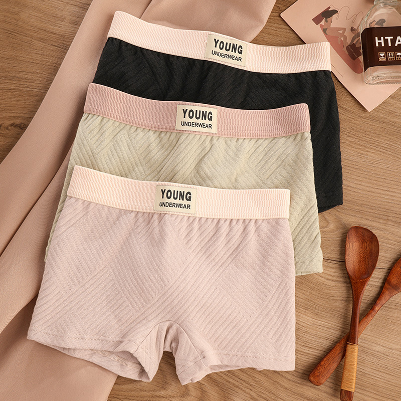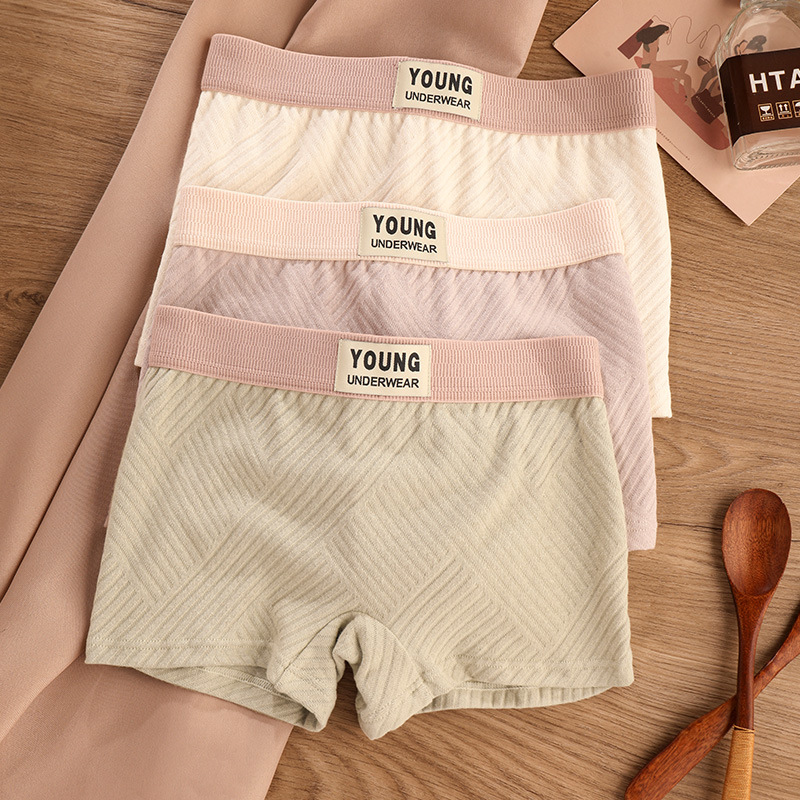 순면 여성 속옷, 여성용 사각팬티, 항균 가랑이, 여름용 순면 줄무늬 자카드 여성용 사각팬티스토어 가기