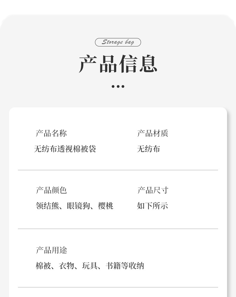 새로운 부직포 넥타이 곰 투명 창 보관 가방 방진 편리한 마무리 퀼트 의류 일 용품 및 기타 보관