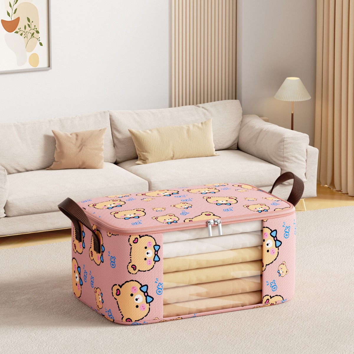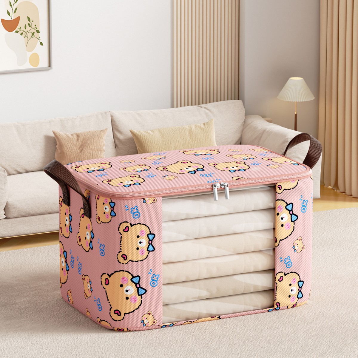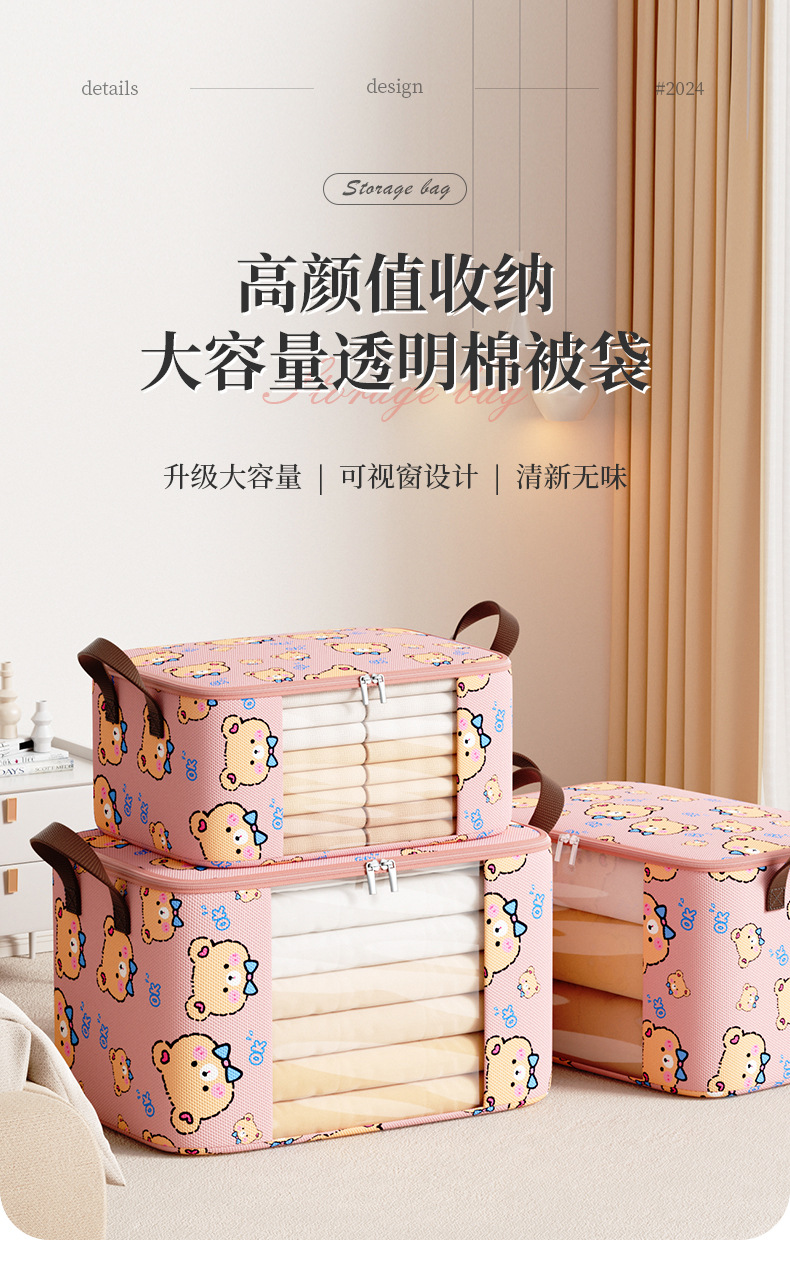 새로운 부직포 넥타이 곰 투명 창 보관 가방 방진 편리한 마무리 퀼트 의류 일 용품 및 기타 보관스토어 가기