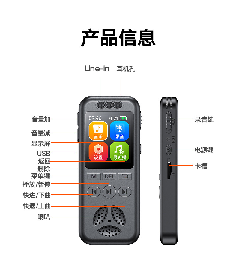 스마트 녹음기 초장시간 녹음 SU7 대형 컬러 스크린 대형 스피커 고화질 소음 감소 대용량 휴대용 녹음기