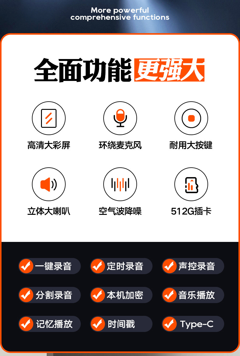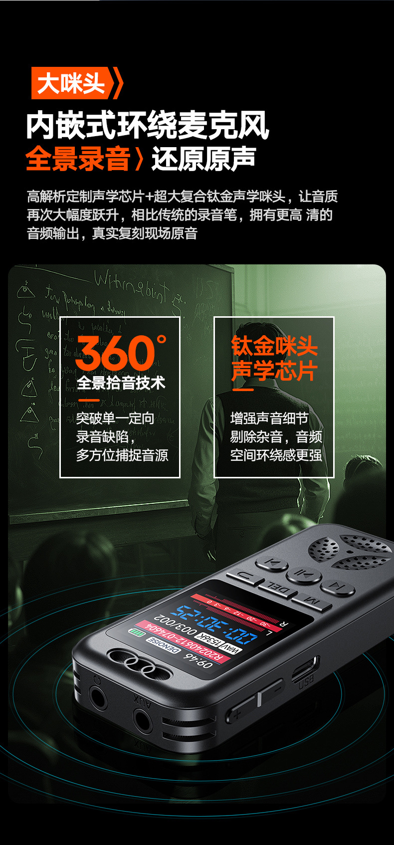 스마트 녹음기 초장시간 녹음 SU7 대형 컬러 스크린 대형 스피커 고화질 소음 감소 대용량 휴대용 녹음기스토어 가기