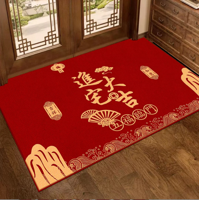빨간색 출입문 매트, 행운과 재물을 불러들이는 디자인, 오염 방지, 미끄럼 방지, 실리콘 바닥, 절단 가능스토어 가기