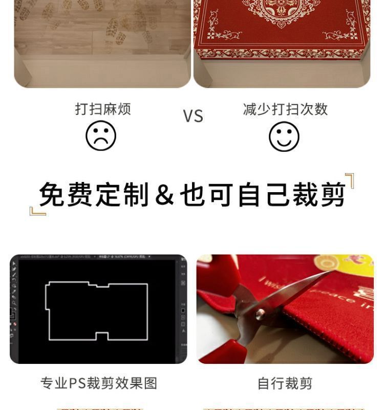 빨간색 출입문 매트, 행운과 재물을 불러들이는 디자인, 오염 방지, 미끄럼 방지, 실리콘 바닥, 절단 가능