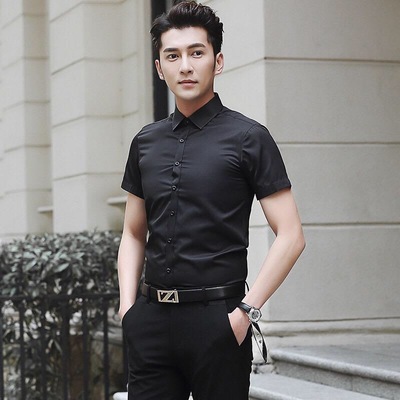 화이트 셔츠 남성용 긴팔 비 다림질 비즈니스 원피스 슬림 핏 한국식 전문 워킹 남성용 화이트 캐주얼 세트 셔츠스토어 가기