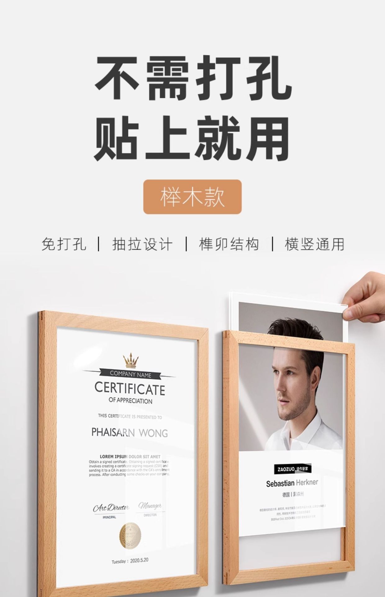 A4 특허 무타공 증명서 액자, 자격증 액자, 명예 증서, 서류 걸이, 벽걸이 디스플레이, 이미지 월, 나무 액자스토어 가기