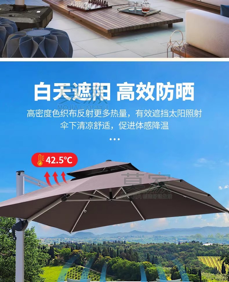 Mojia 야외 우산 야외 파라솔 코트야드 태양 우산 야외 파라솔 태양 빛 우산 로마 우산 광장