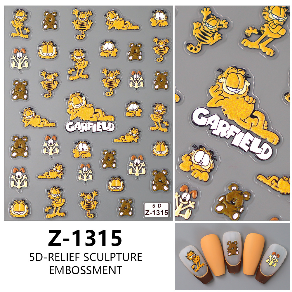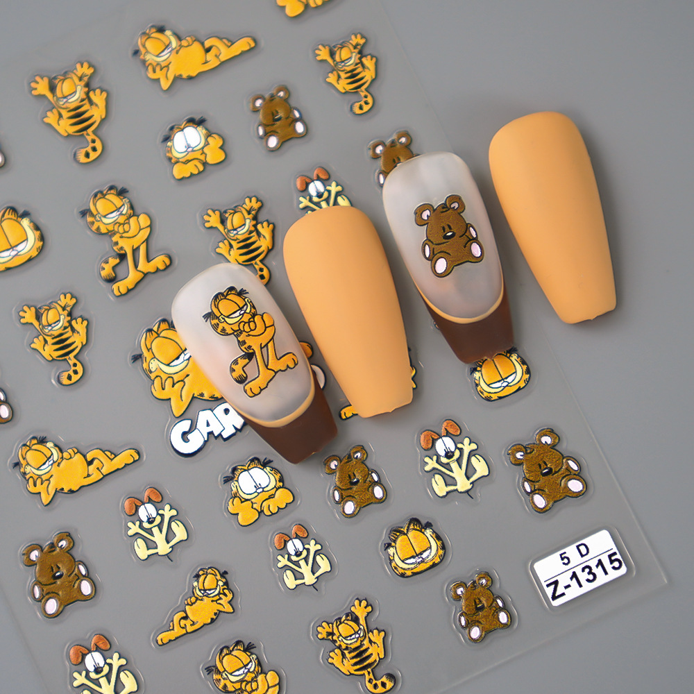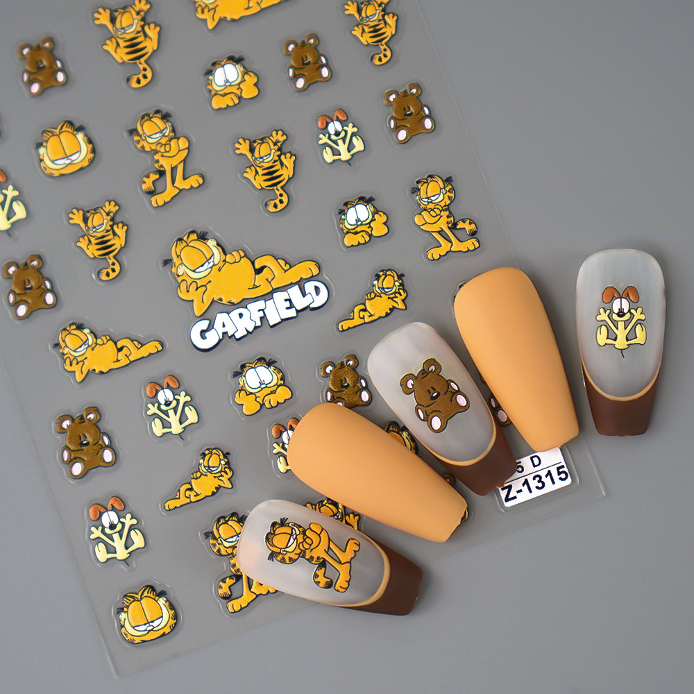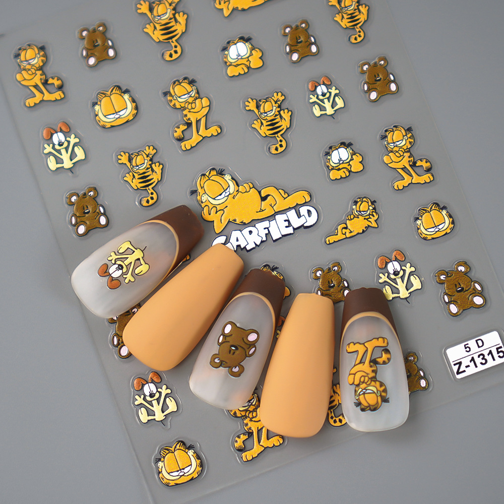 Redanco 새로운 5D 구호 만화 가필드 네일 아트 스티커 3 차원 접착 네일 스티커 도매
