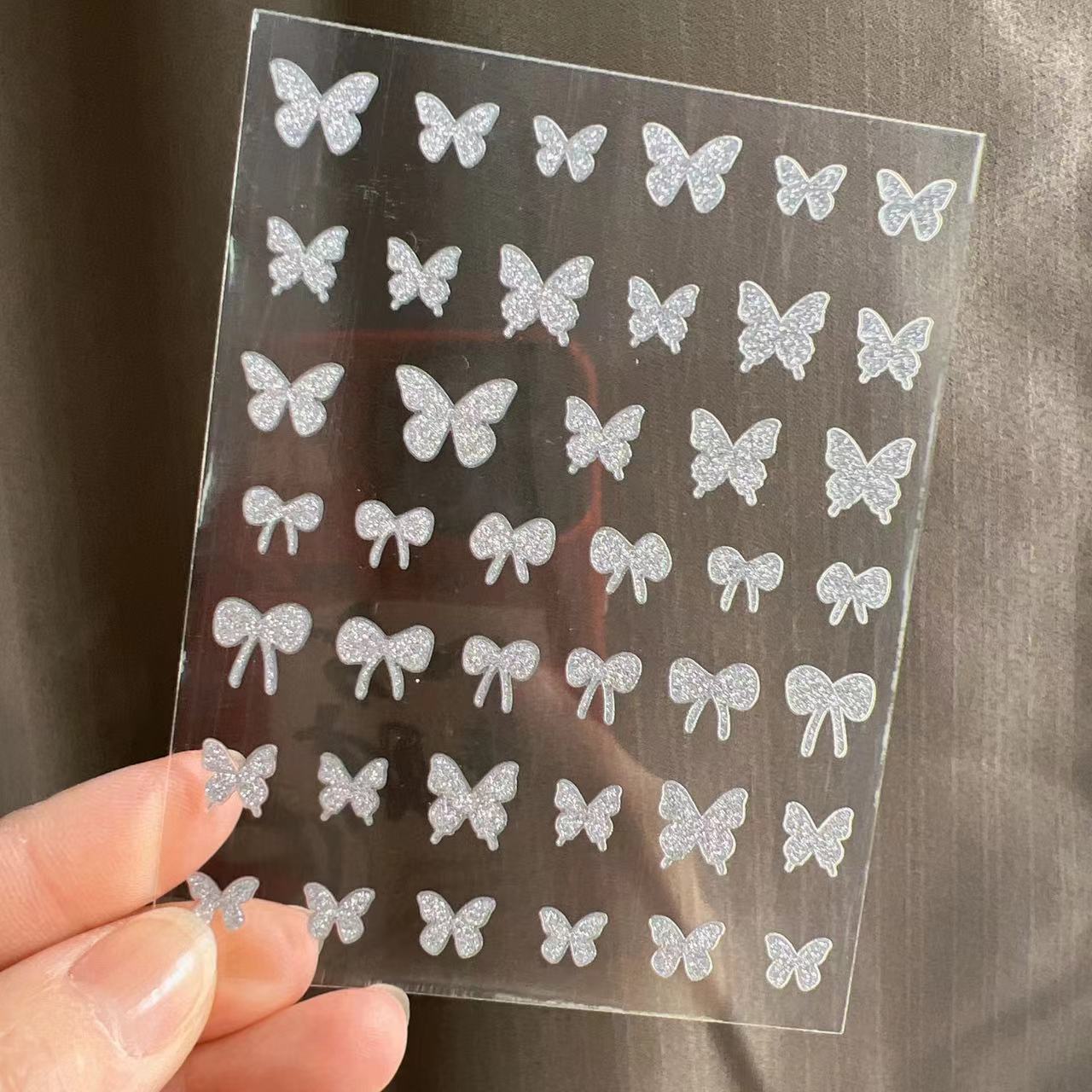 Redanco 새로운 3D 그물 붉은 폭발 플래시 실버 프랑스 스티커 네일 아트 스티커 다시 접착제 네일 스티커 꽃 보석 도매