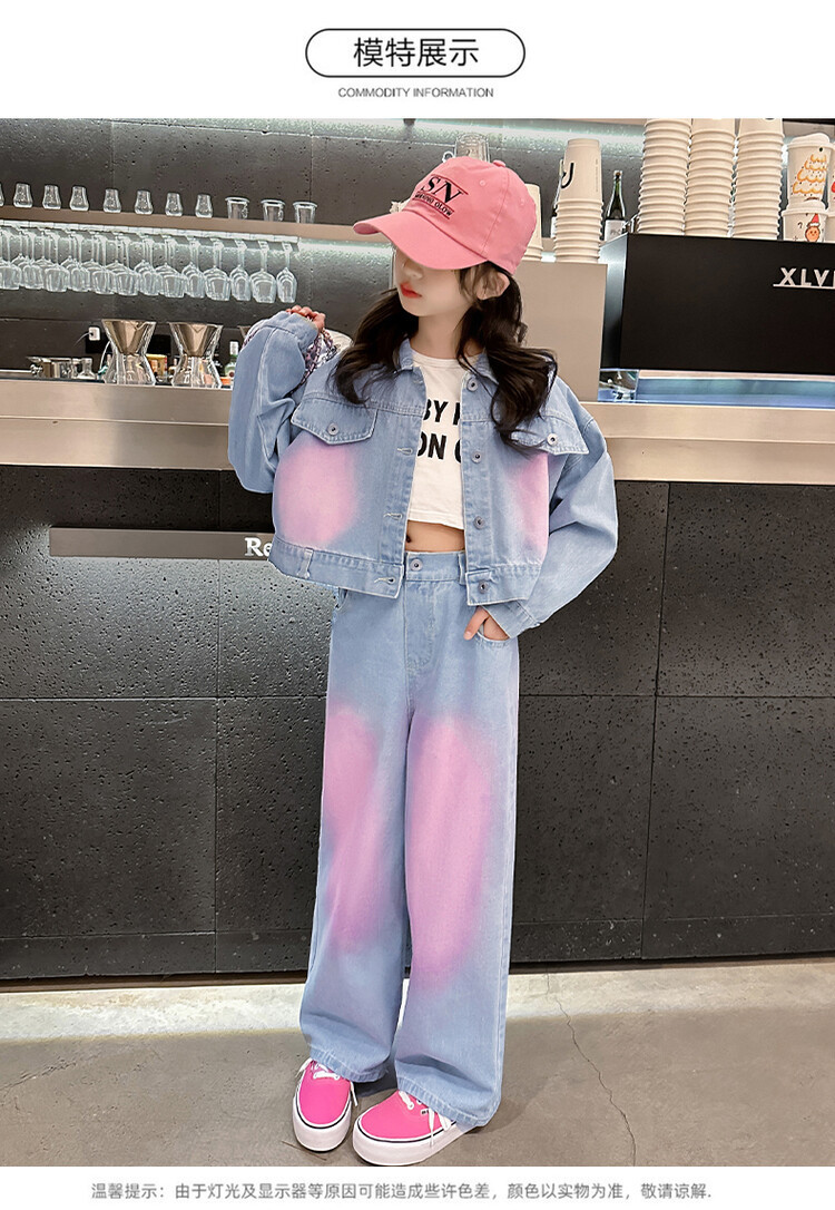 여아용 작은 프랑스 스타일 세트 2025 봄 의류 중대형 어린이 도파민 재킷 와이드 팬츠 투피스 세트 데님 트렌디 스타일스토어 가기