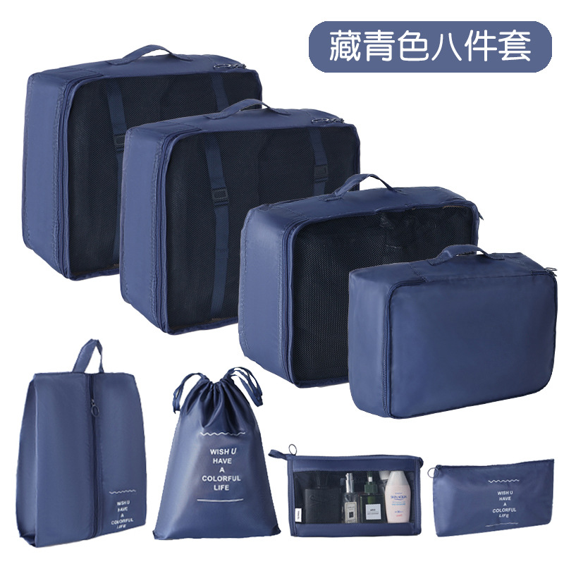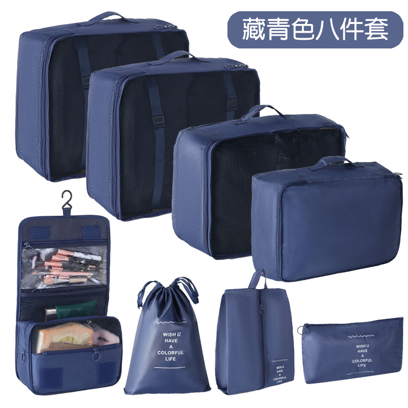 • 8 (더블 번들 포켓) 의 네이비 여행 저장 가방 세트