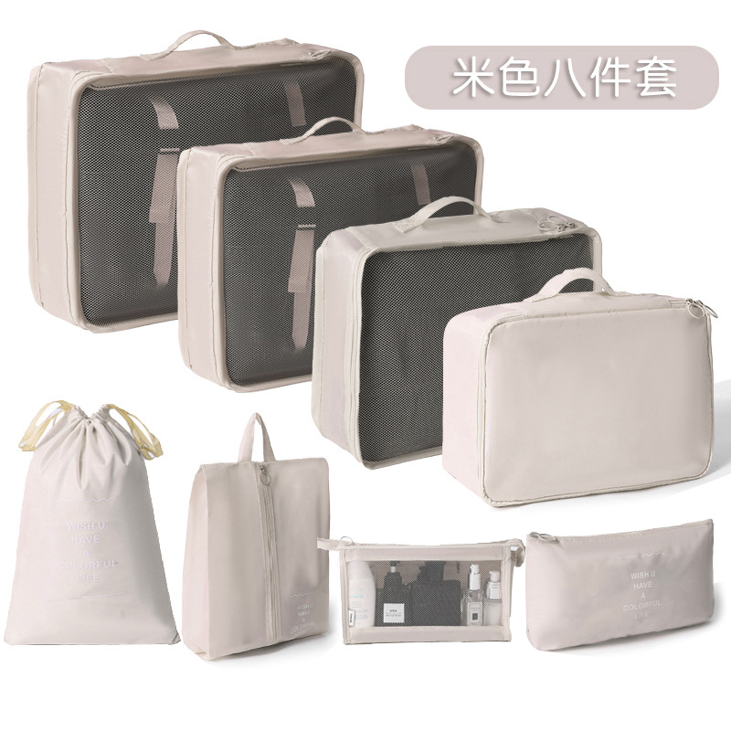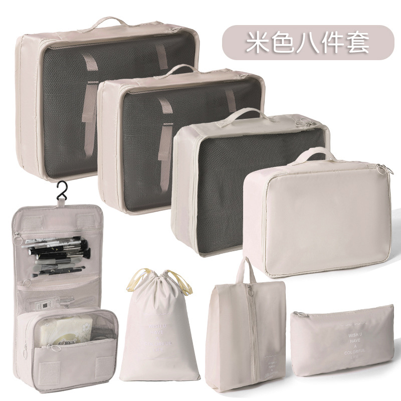 • 베이지 색 여행 보관 가방 8 세트 (세탁 가방)