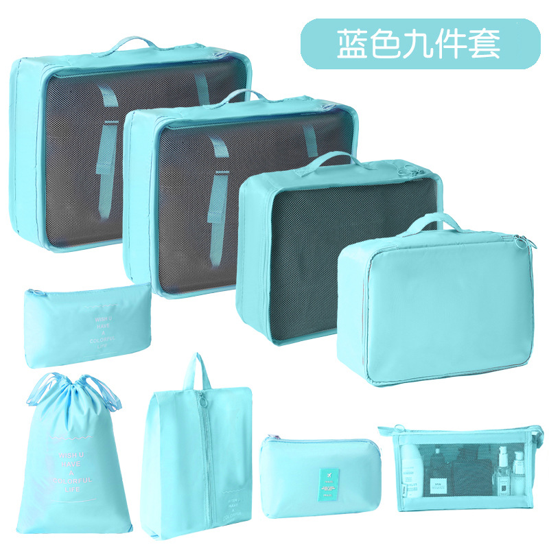 • 밝은 파란색 여행 보관 가방 9 세트 (세면 용품 화장품 가방)