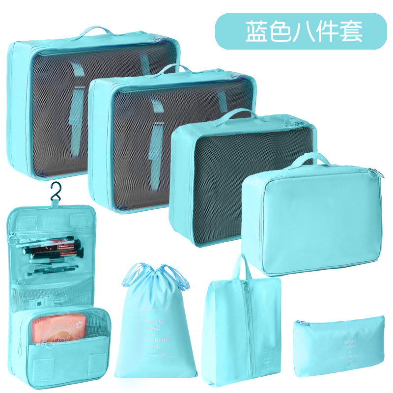 • 밝은 파란색 여행 보관 가방 8 세트 (세탁 가방)