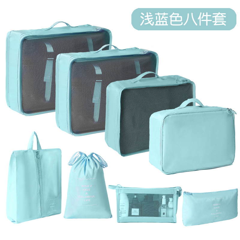 • 밝은 파란색 여행 저장 가방 8 피스 세트 (더블 번들 포켓)