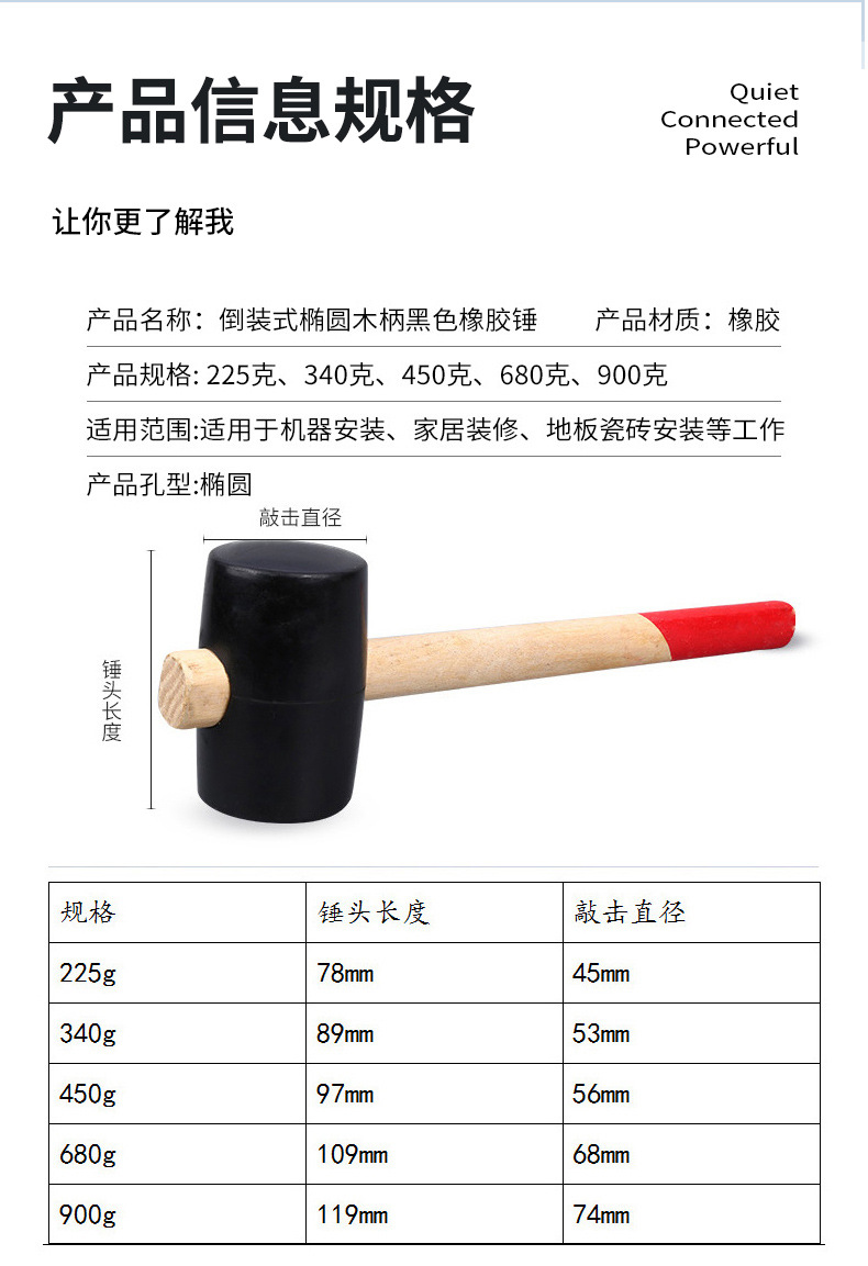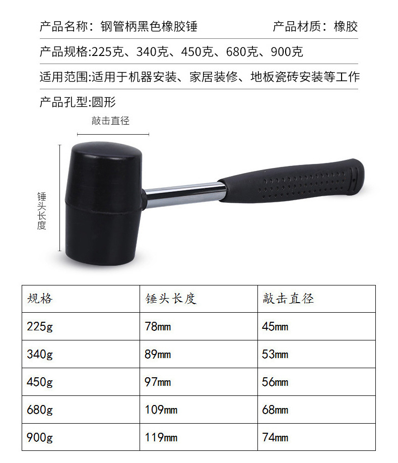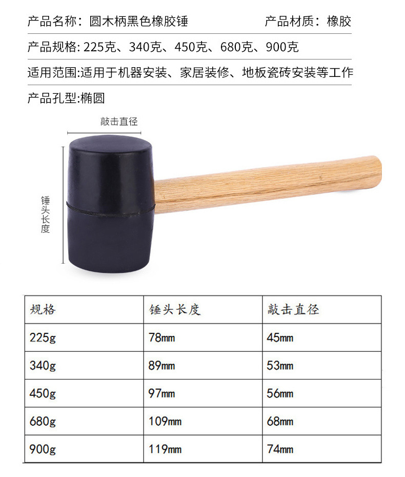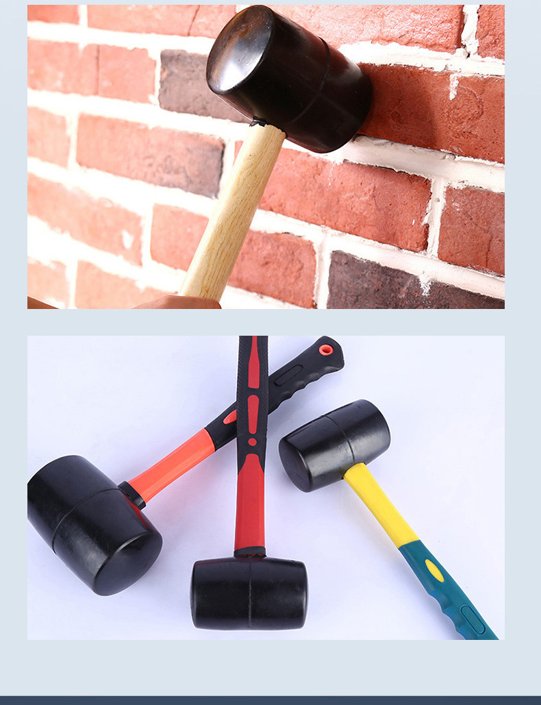 나무 손잡이 고무 망치 장식 도구 섬유 손잡이 고무 망치 강철 파이프 손잡이 홈 개선 망치 바닥 타일 설치 망치