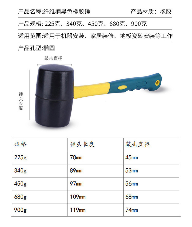 • 섬유 손잡이 고무 망치 160Z (500g, 48개/개)