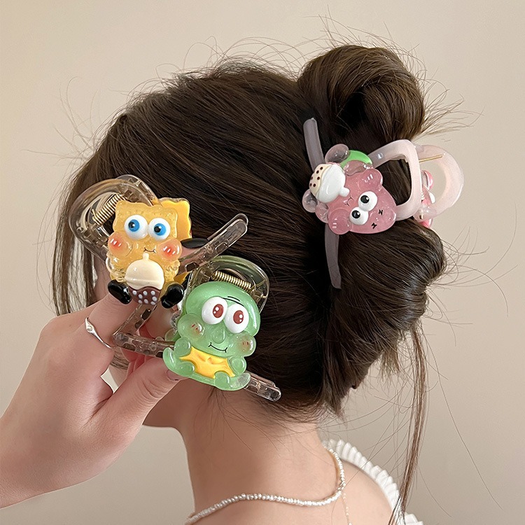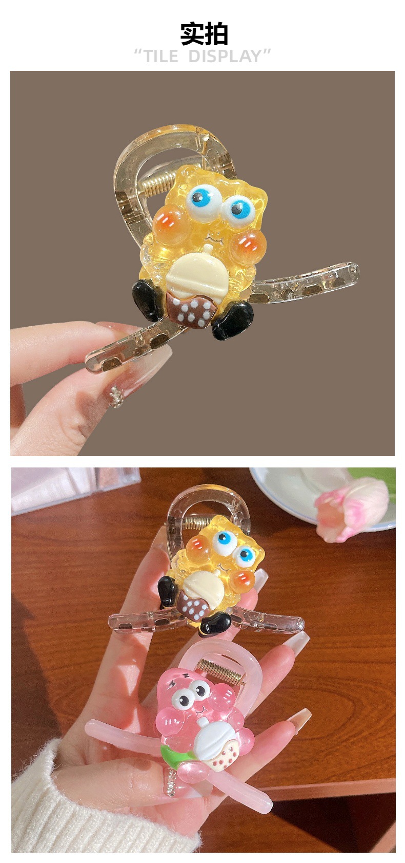 2024 새로운 귀여운 만화 클립 여성 스폰지 밥 머리 디스크 헤어 상어 클립 헤어핀 헤어스토어 가기