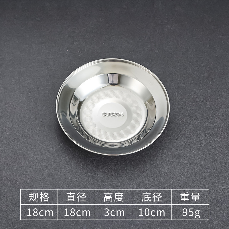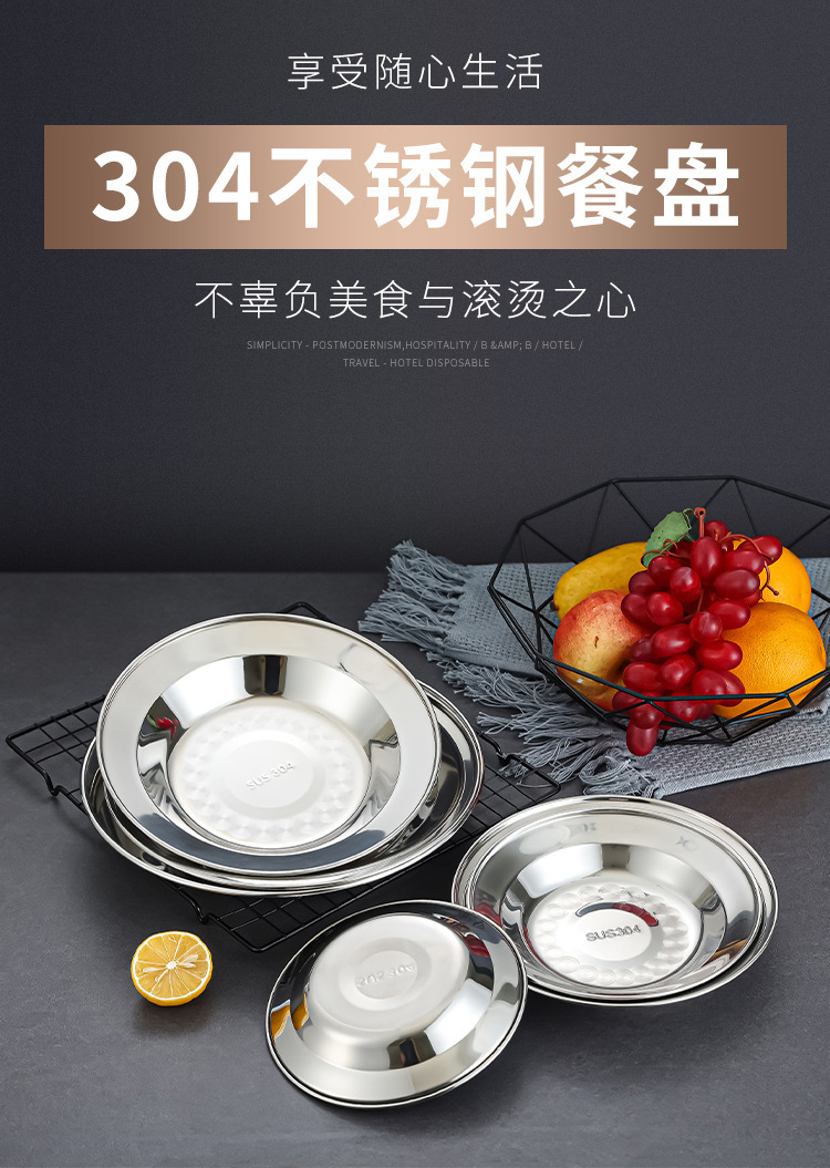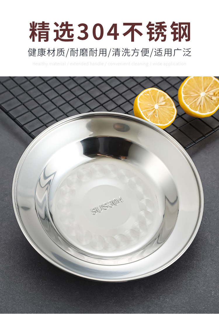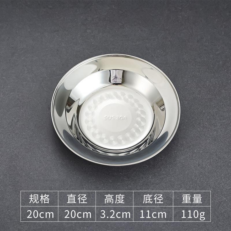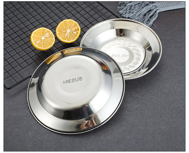 304 스테인레스 스틸 플레이트 디스크 접시 가정용 둥근 철판 얕은 판 작은 접시 접시 트레이 상업용
