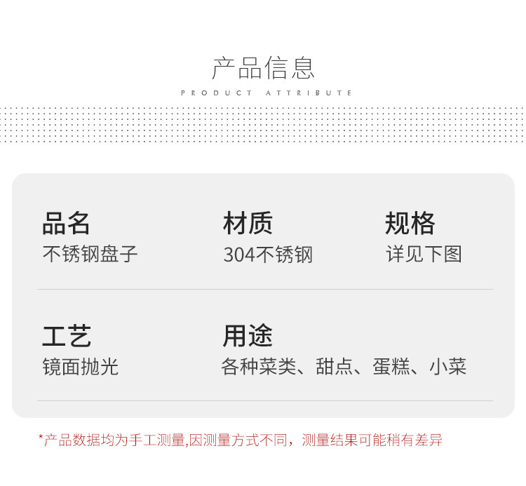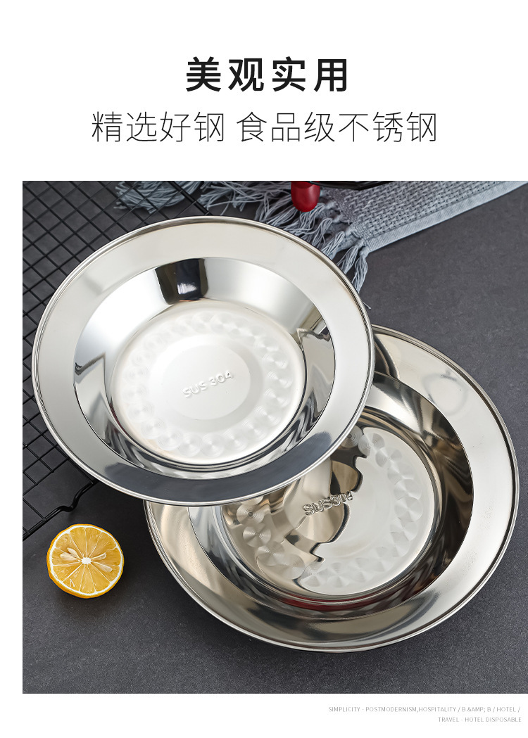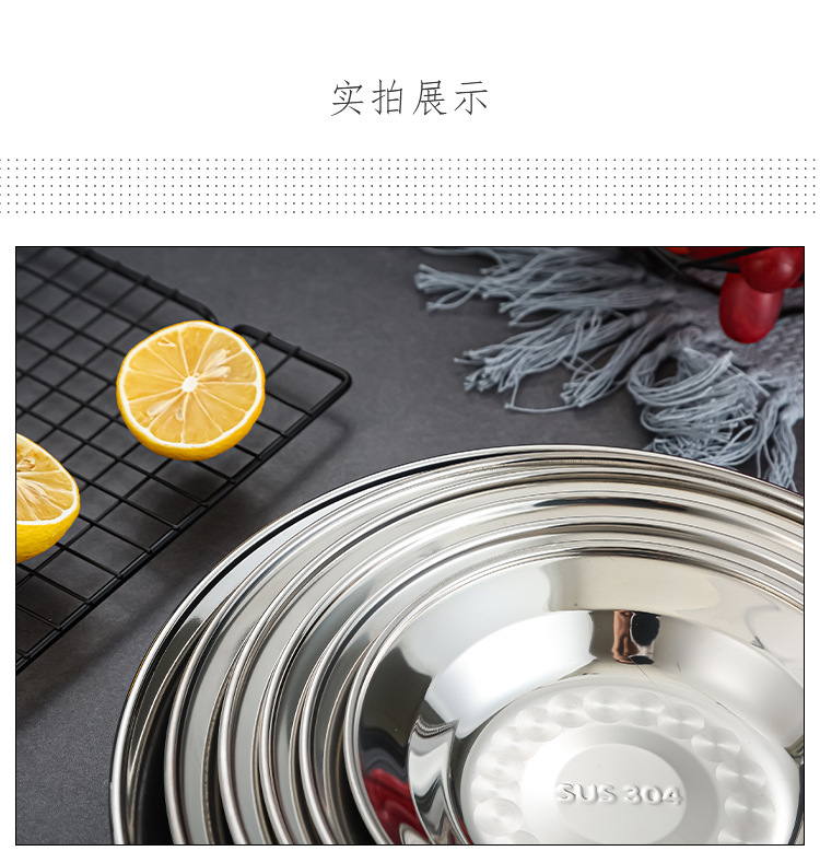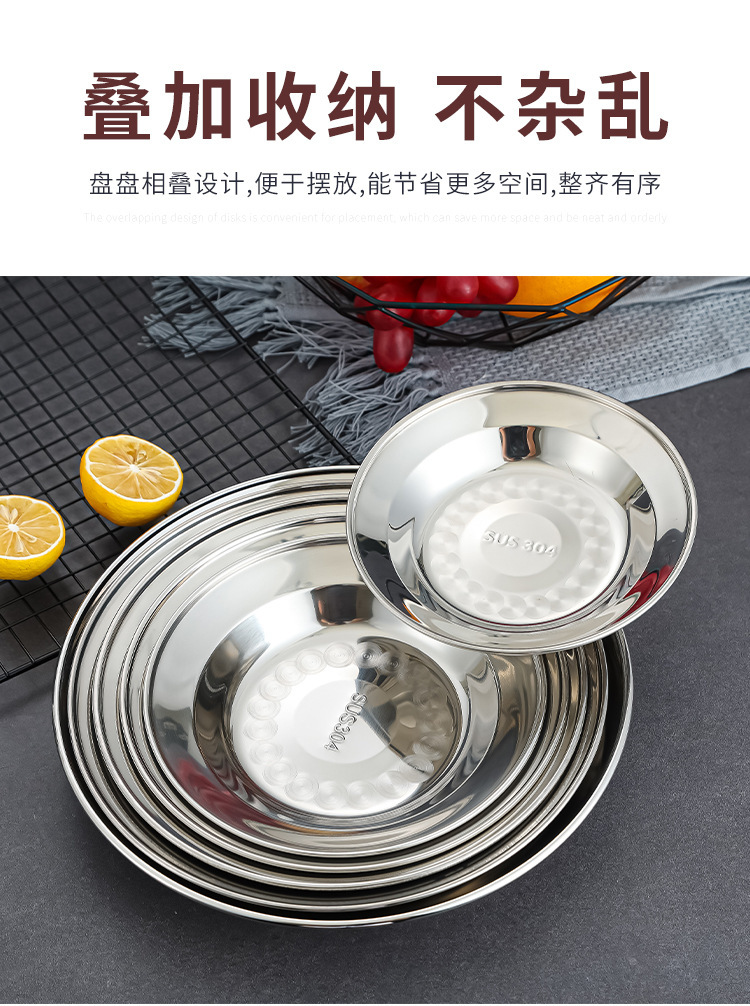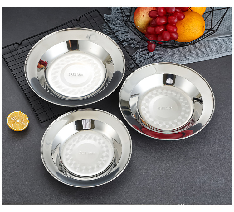 304 스테인레스 스틸 플레이트 디스크 접시 가정용 둥근 철판 얕은 판 작은 접시 접시 트레이 상업용