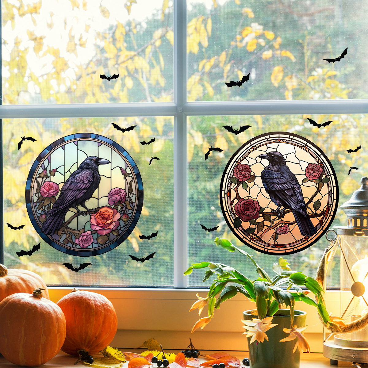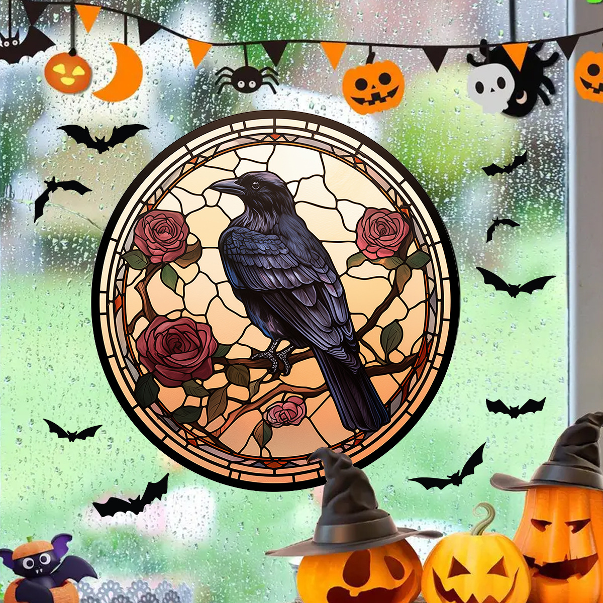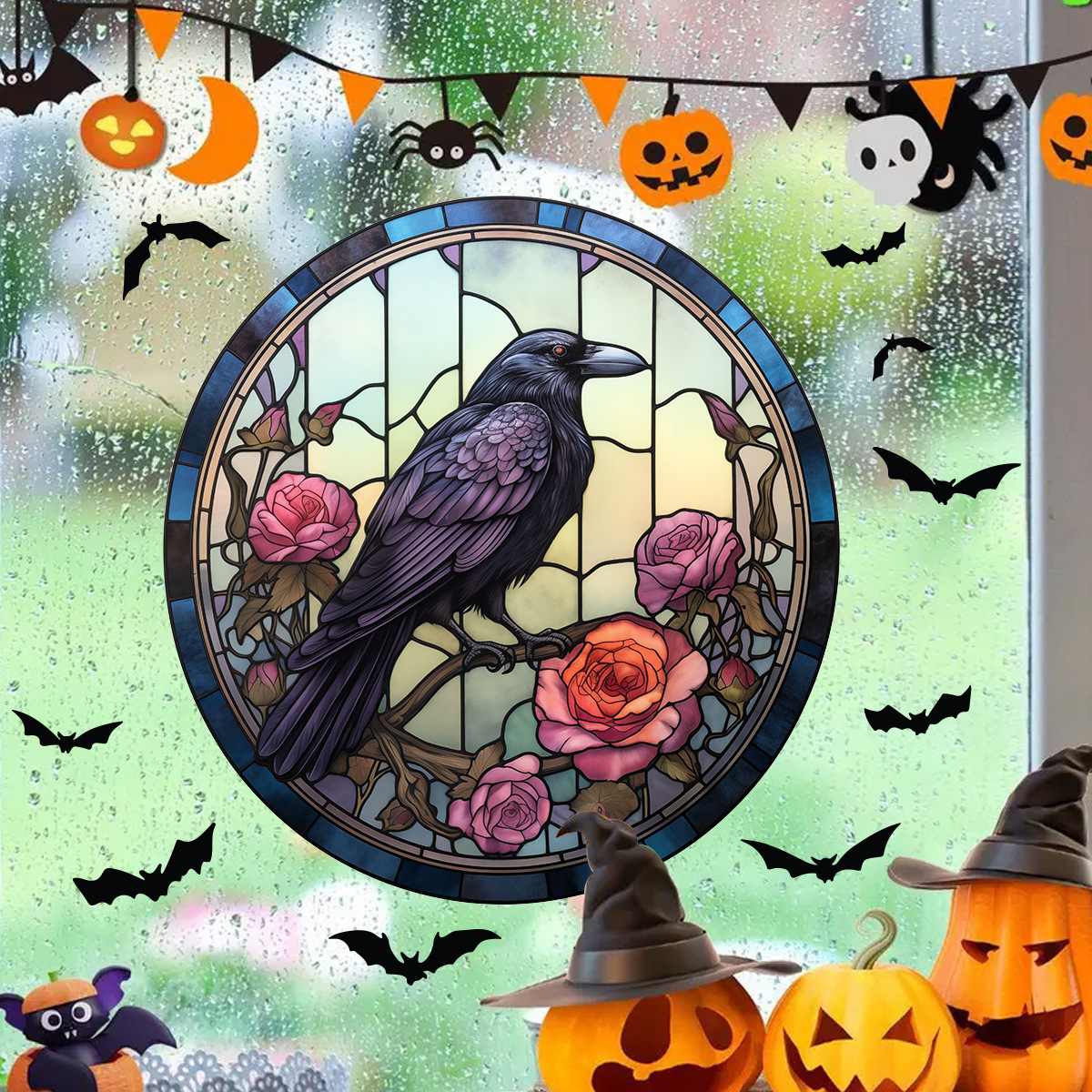 할로윈 바로크 까마귀 유리 정전기 스티커 까마귀 축제 파티 자체 접착 장식 스티커 BR0690C